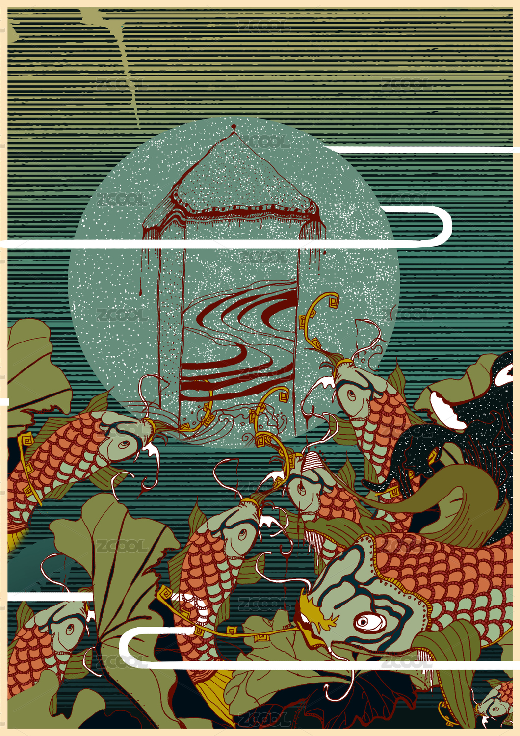 手绘插画-金鱼贺岁