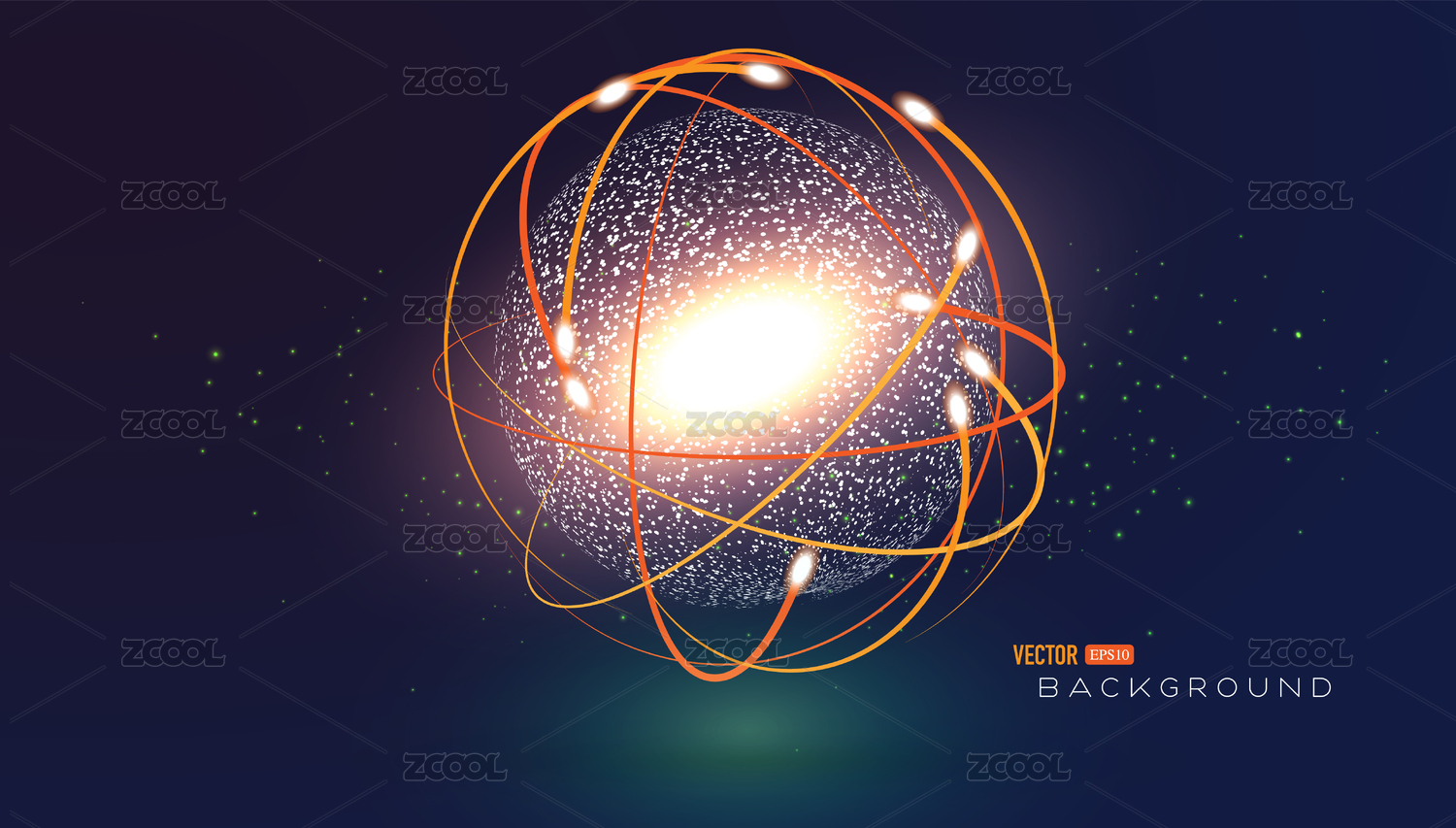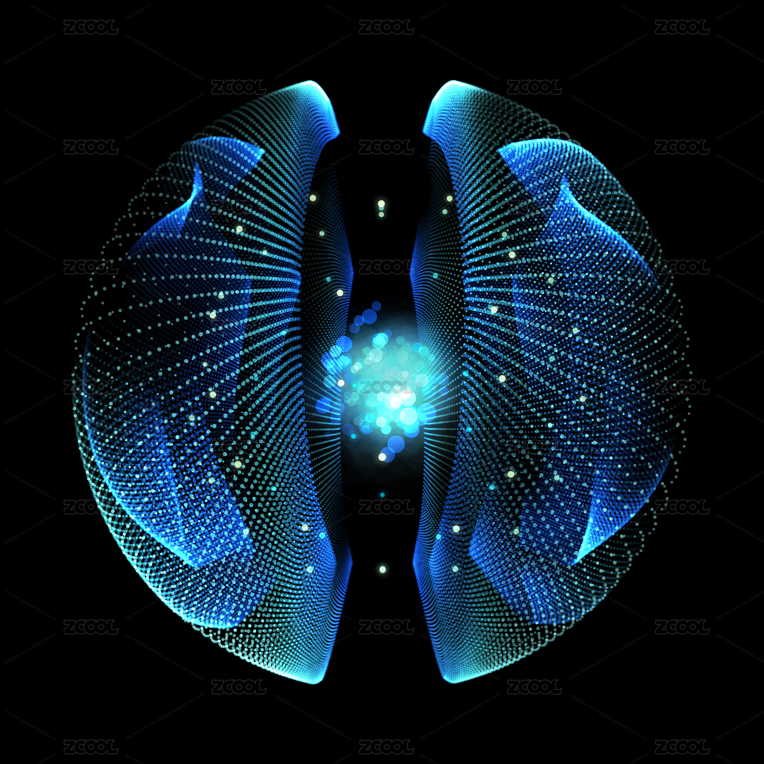 粒子点聚集成原子能球体抽象矢量高科技背景