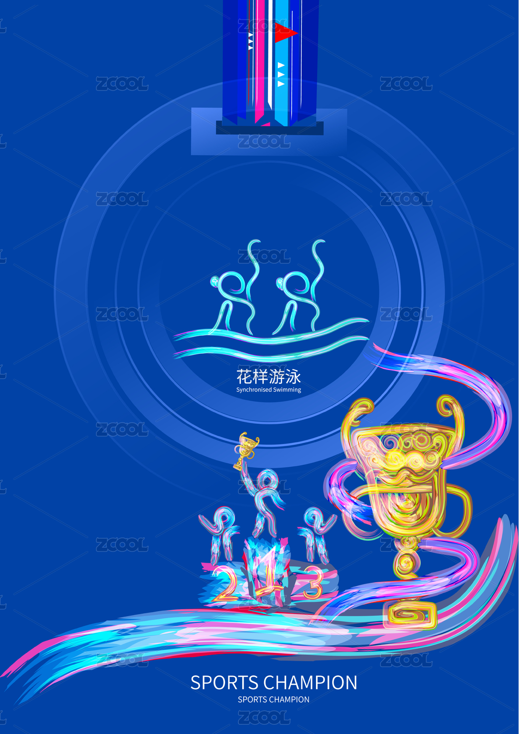 花样游泳锦标赛体育运动会比赛的插画