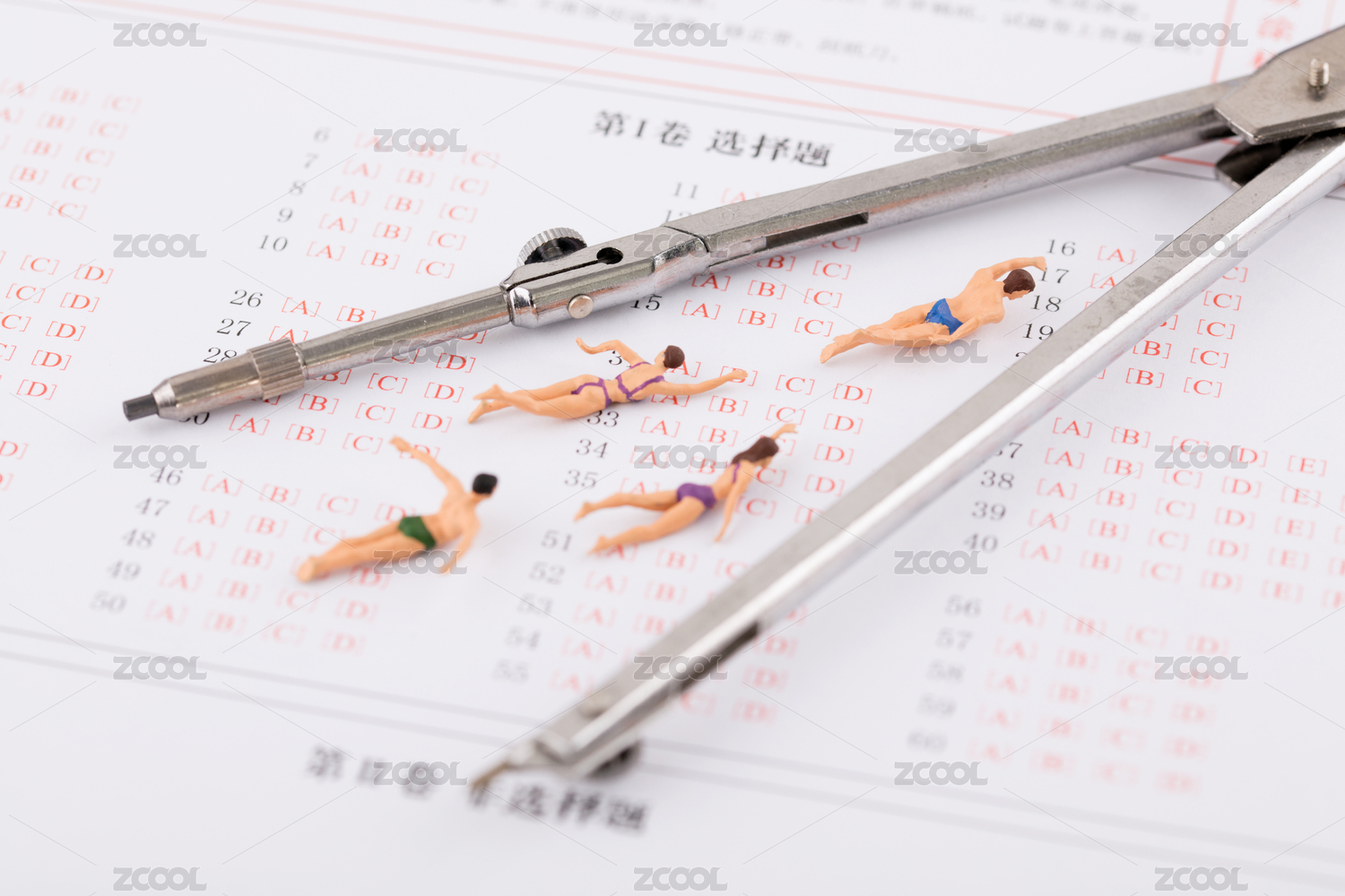 游泳比赛者和圆规在答题卡上