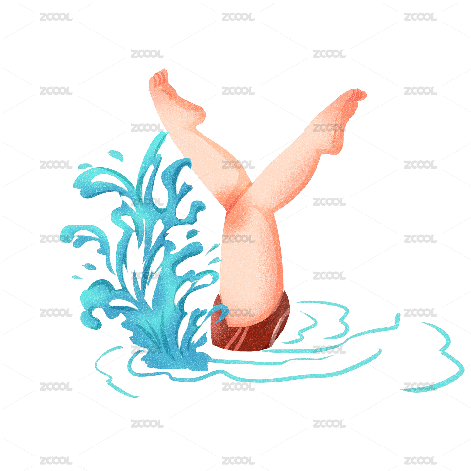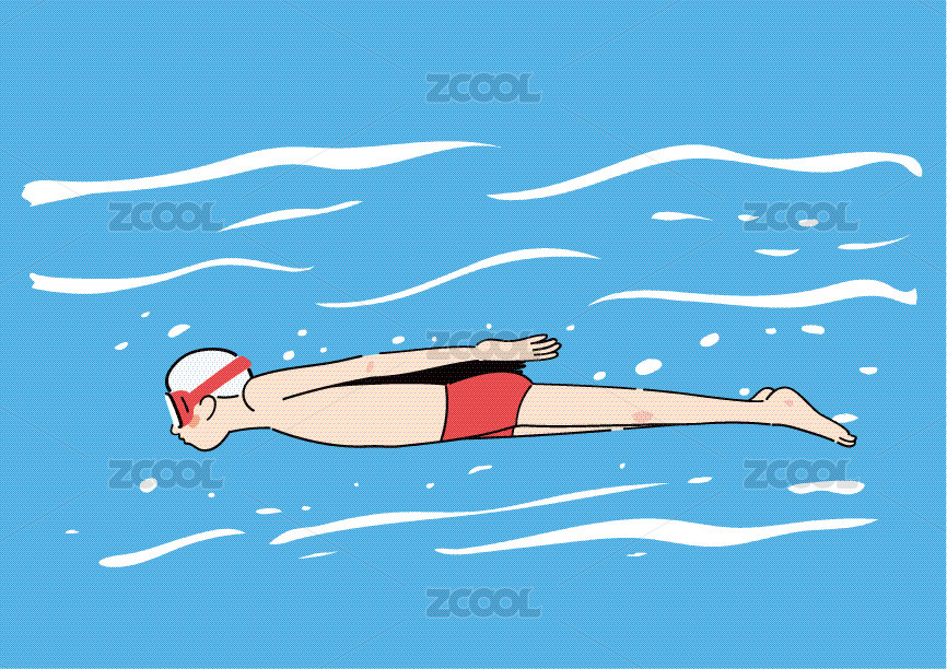 卡通插画一个男生正在游泳