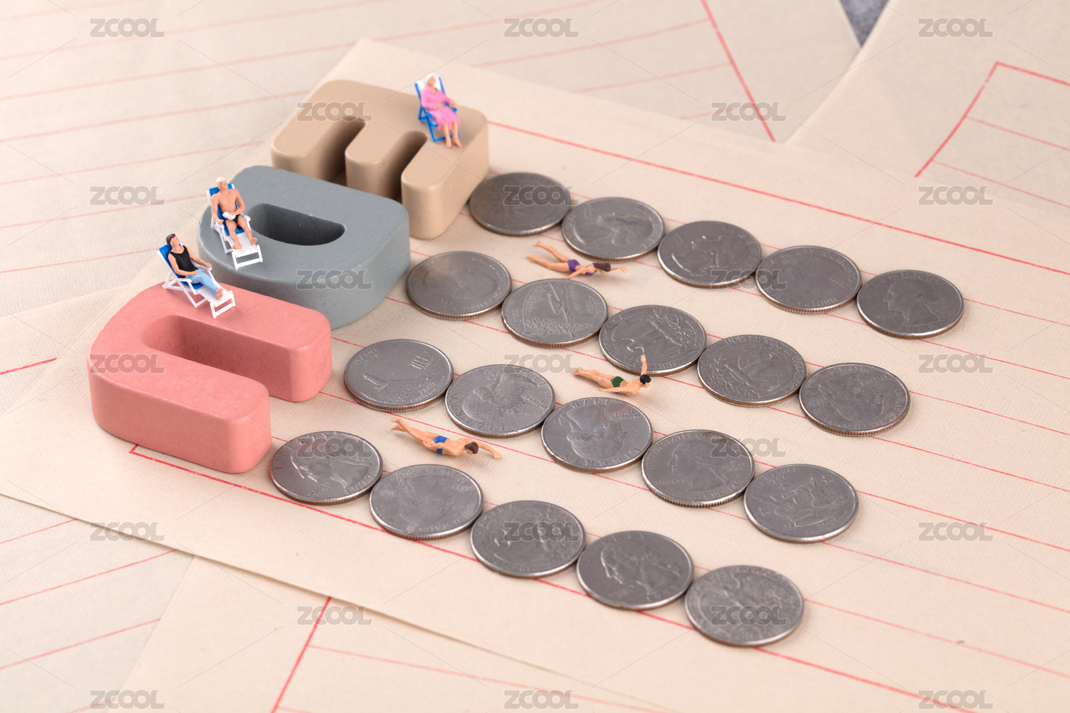 微缩创意条纹泳池游泳拼命竞争的人群