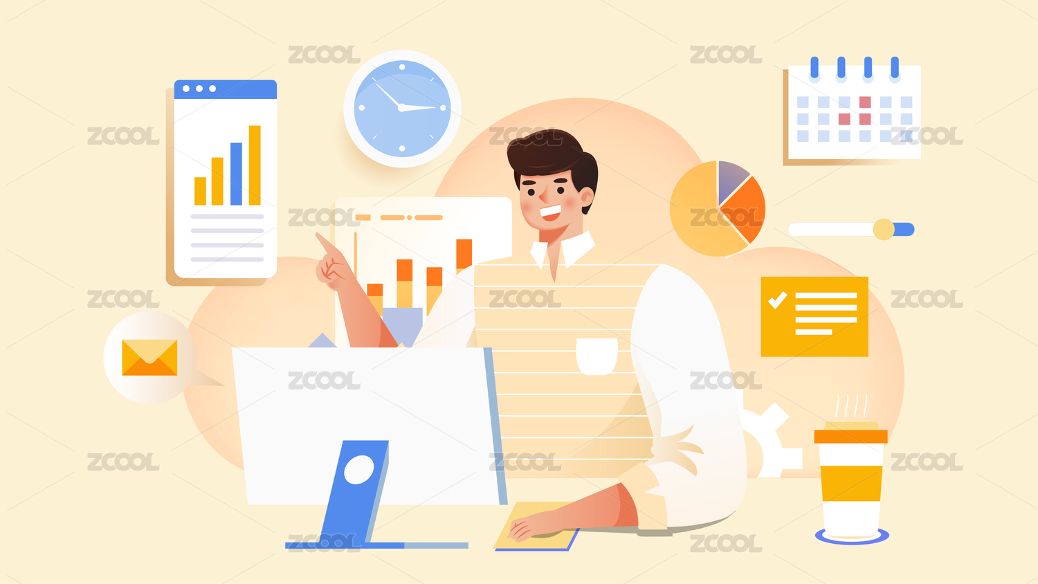 白领多任务办公插画