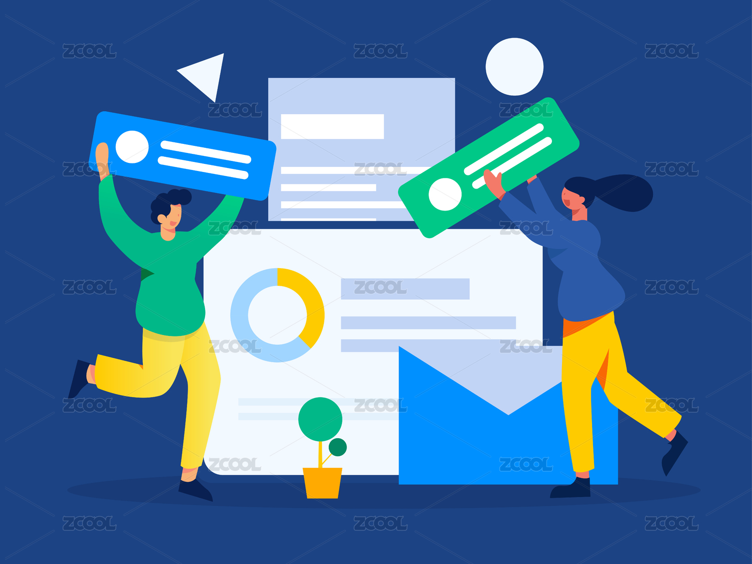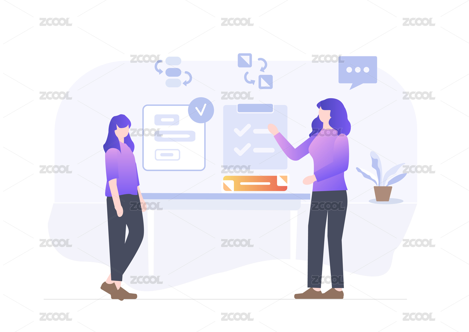 团队协作完成任务2, 矢量扁平人物场景创意概念插画
