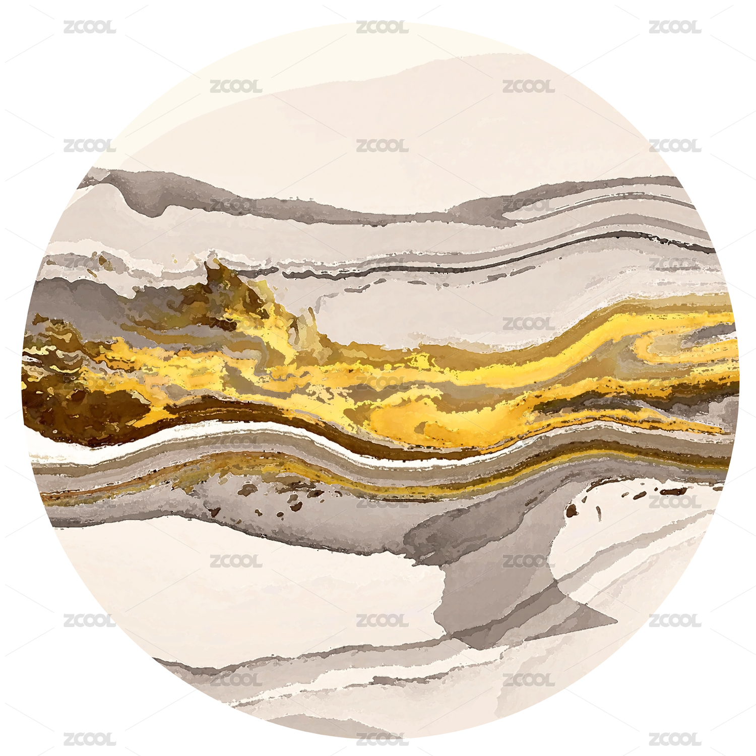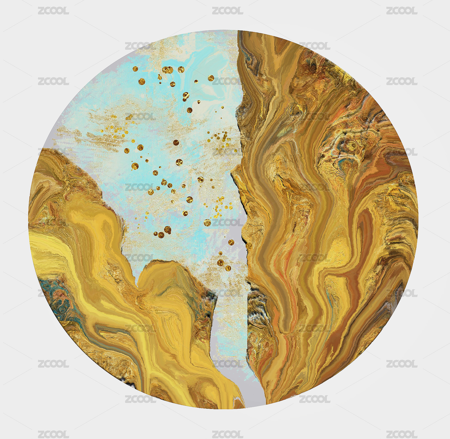 现代手绘抽象鎏金玄关装饰画北欧圆形挂画