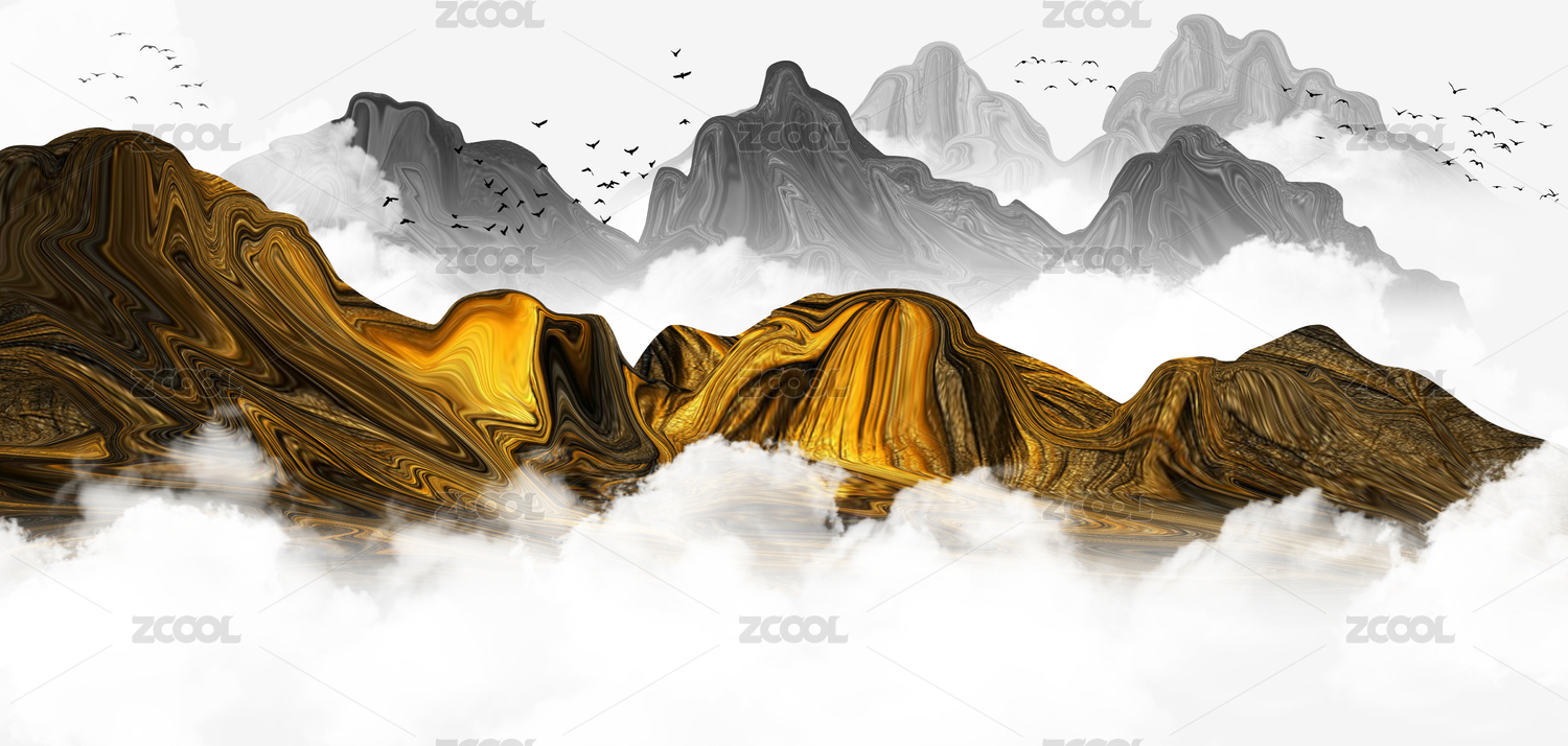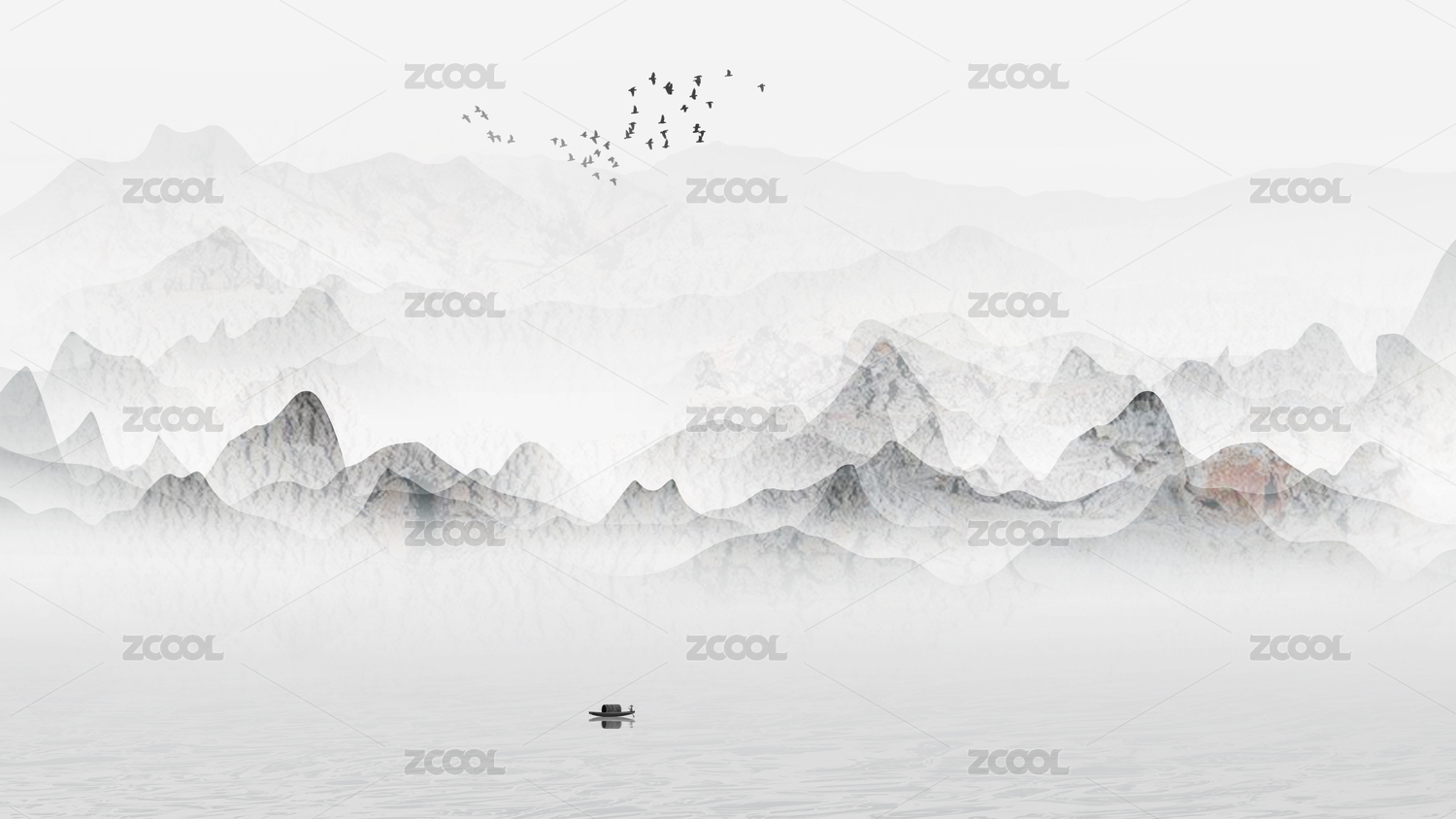 意境山水画水墨装饰画中国风新中式水墨山水鸿运当头