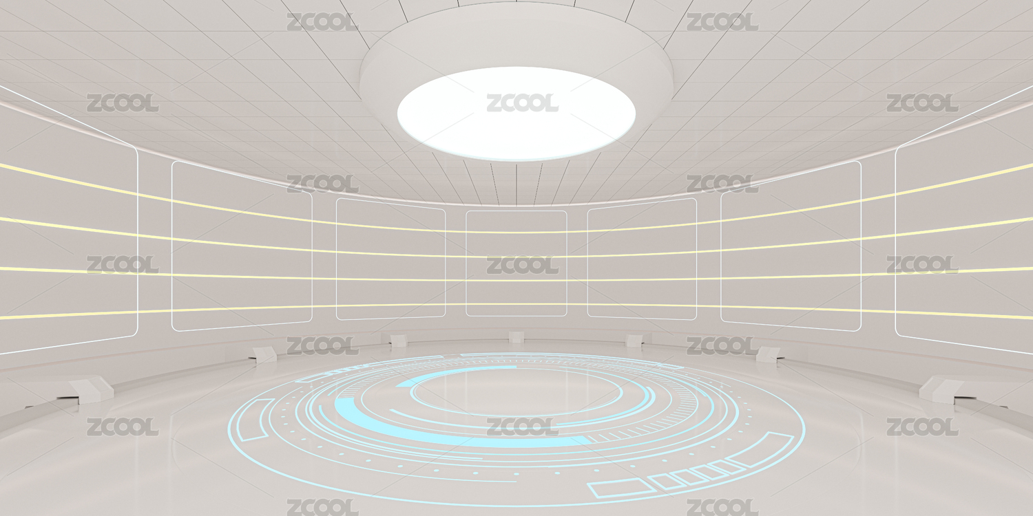 科幻圆形白色室内空间 3D渲染