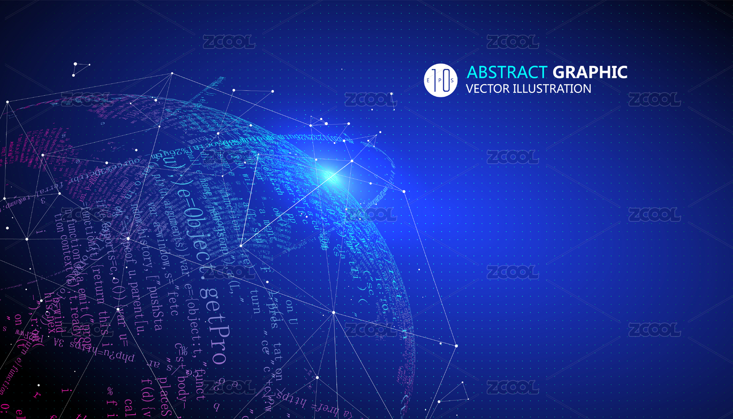 数据代码组成的地球和代表蓝色科技的海报背景或杂志封面