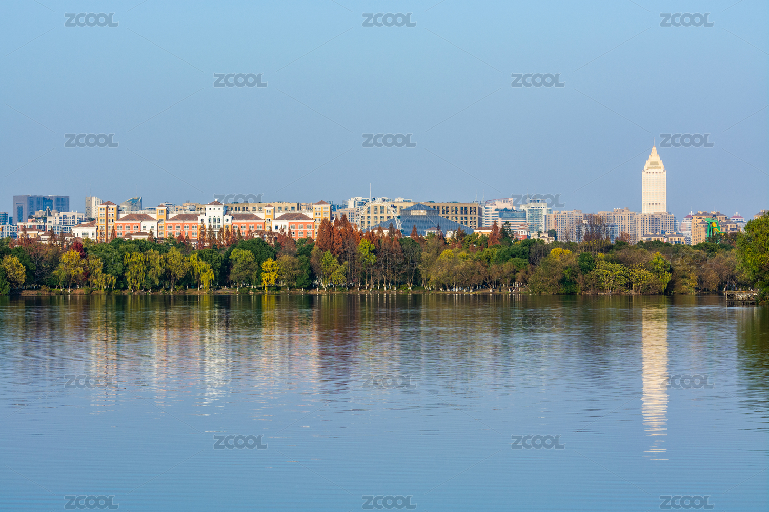 航拍中国浙江省杭州市萧山区湘湖旅游度假区