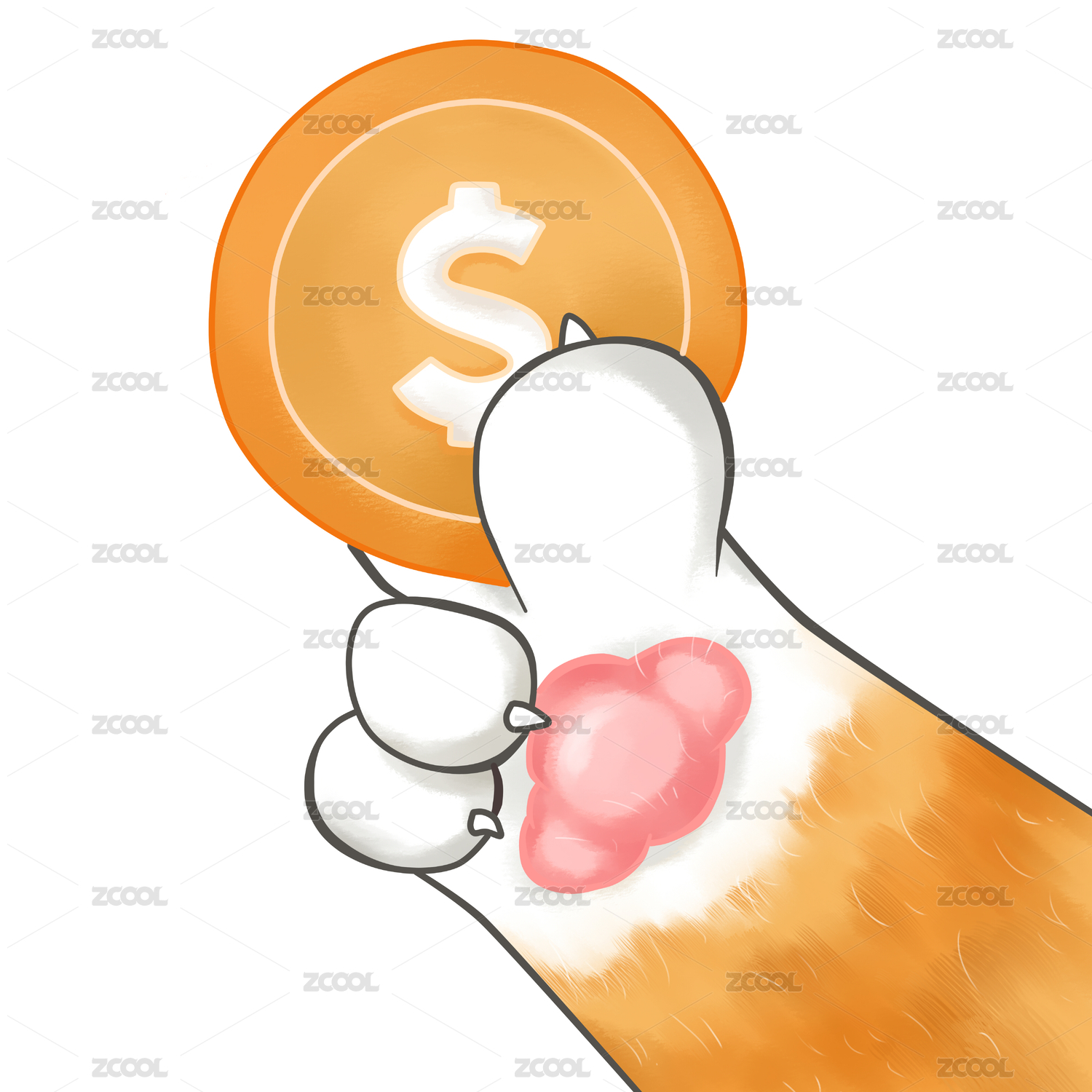 卡通猫咪爪子抓着钱币准备投币