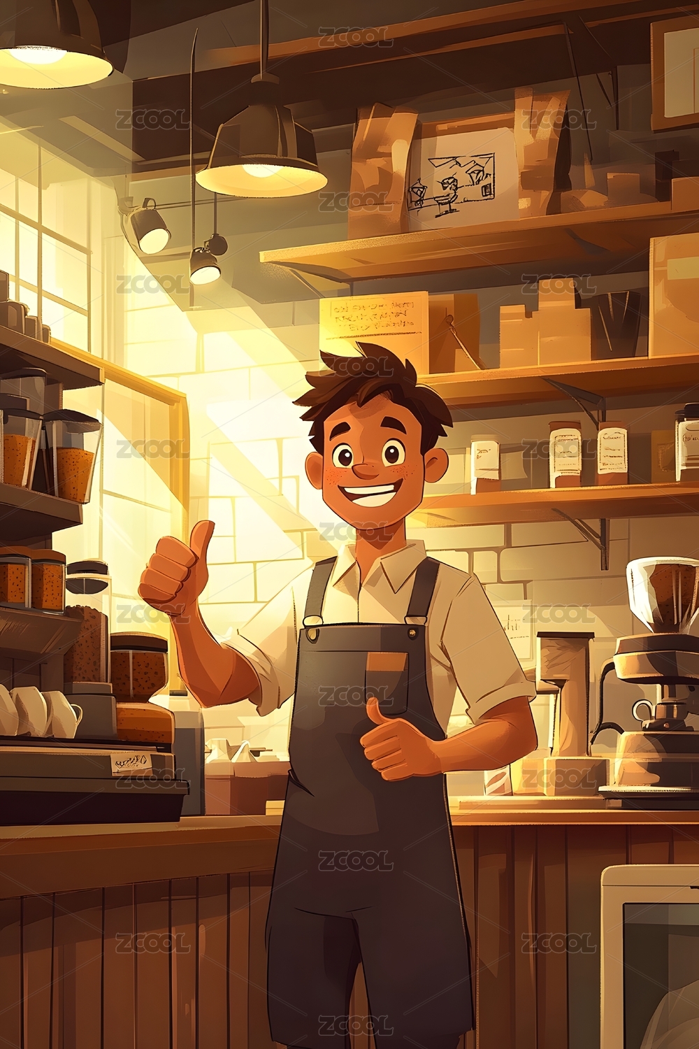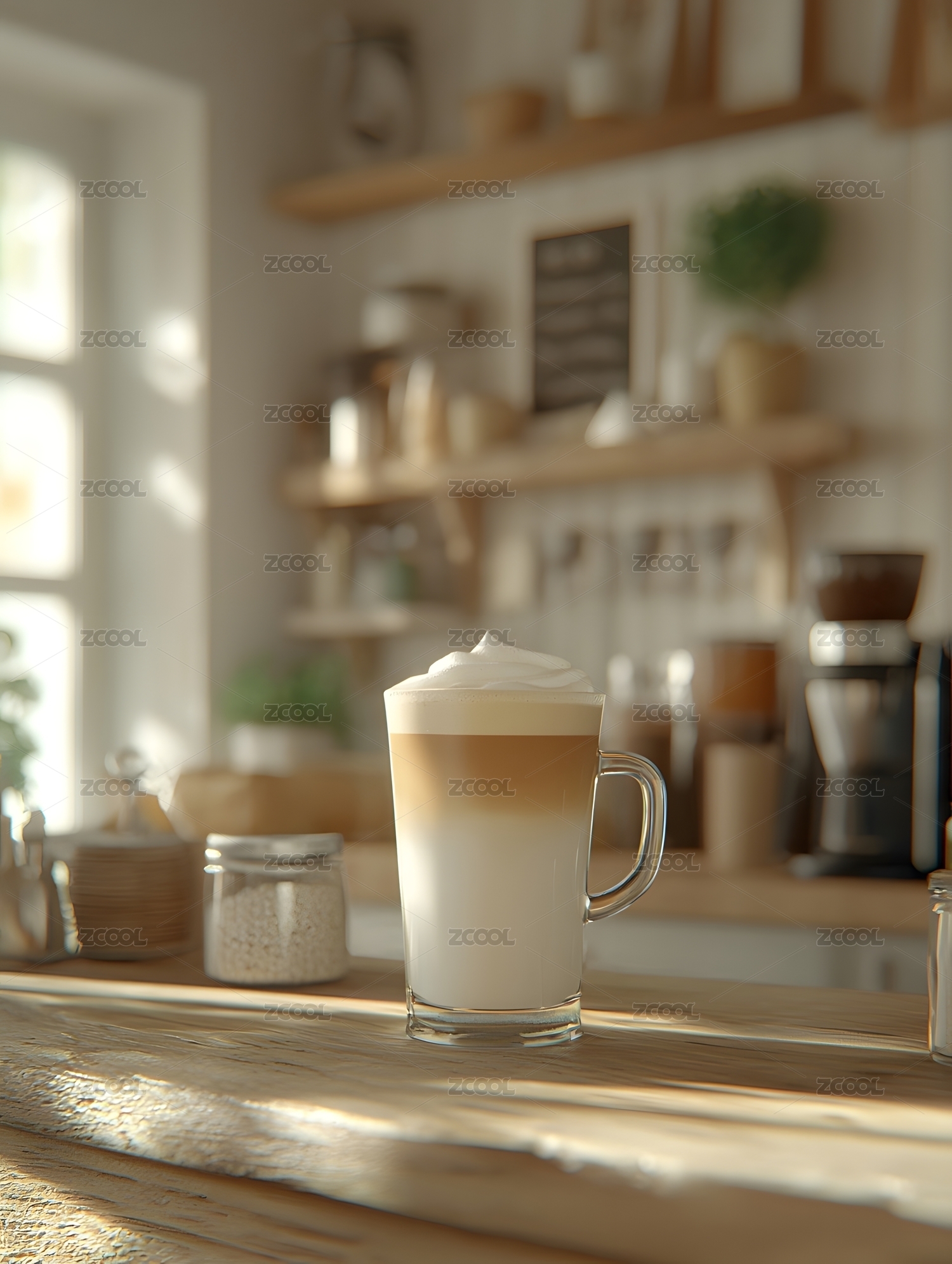 顾客赞赏拿铁的温馨咖啡馆场景