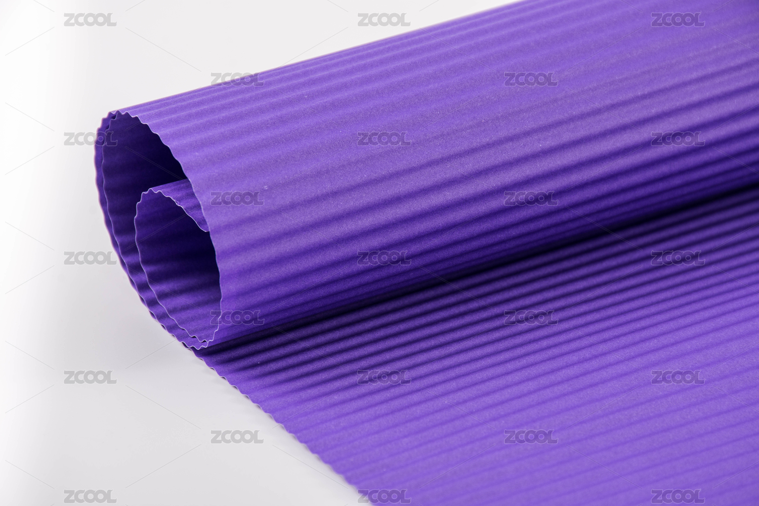 卷起来的浅蓝色瓦楞纸放在白色背景上
