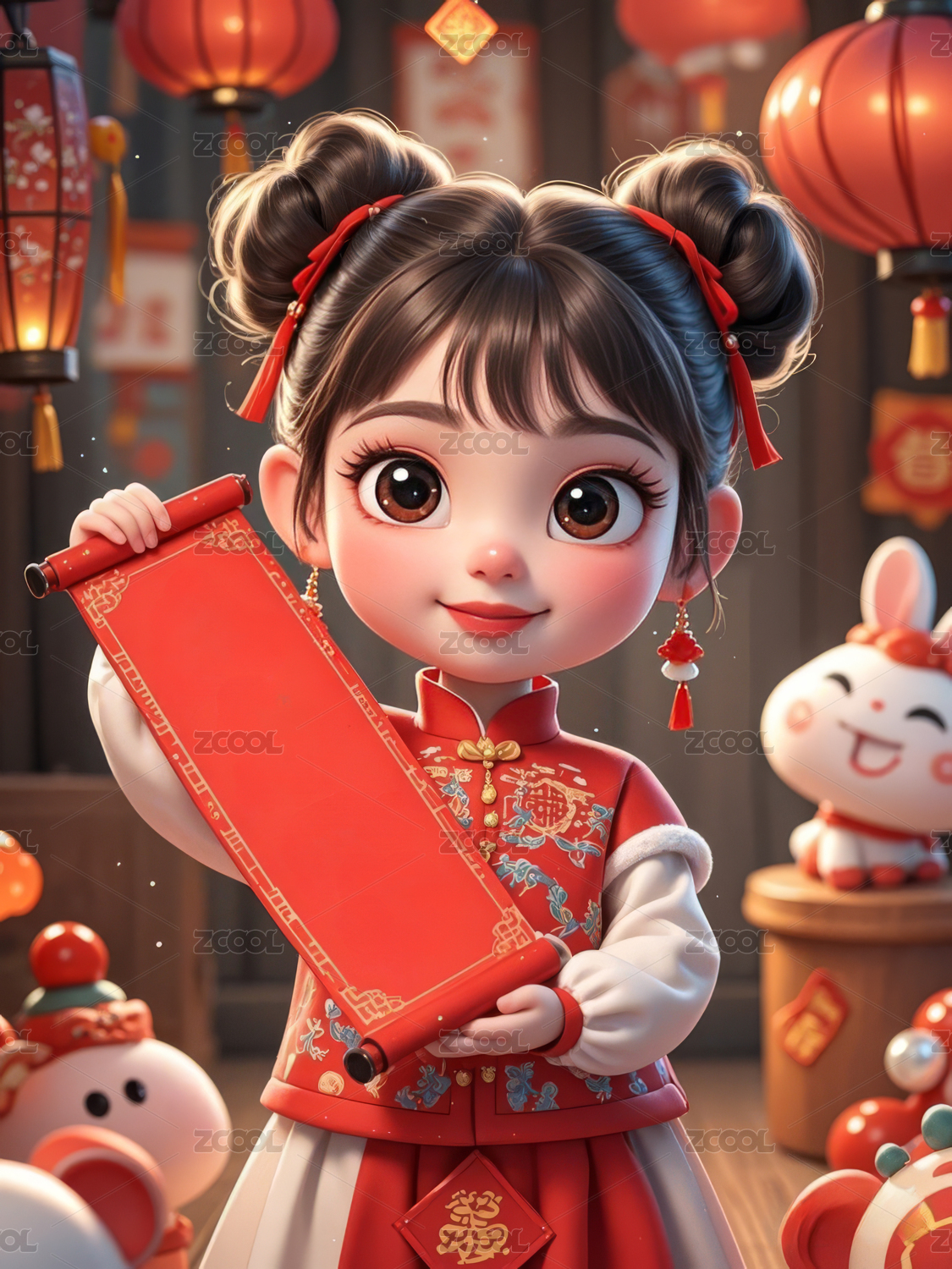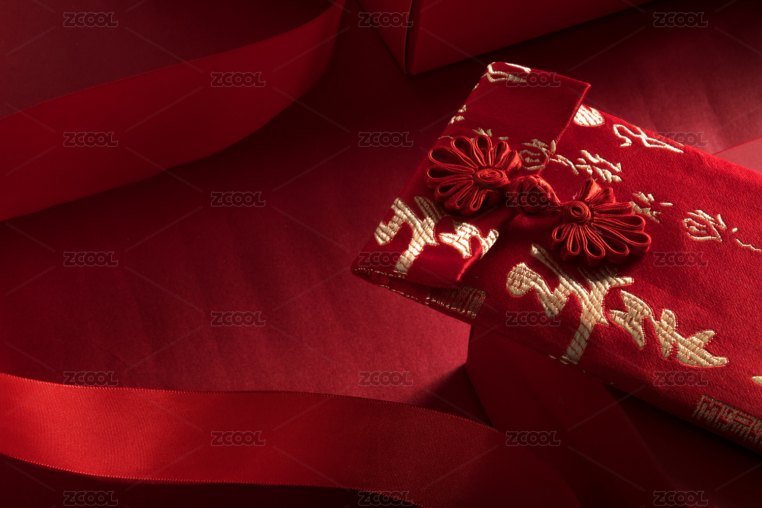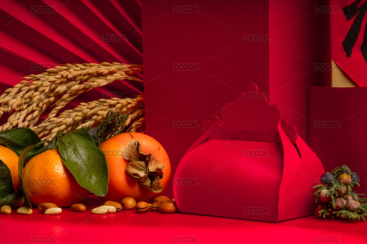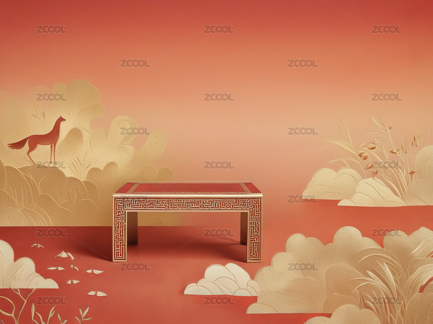 充满中国节日气息的背景下摆放着多个礼品盒及礼品