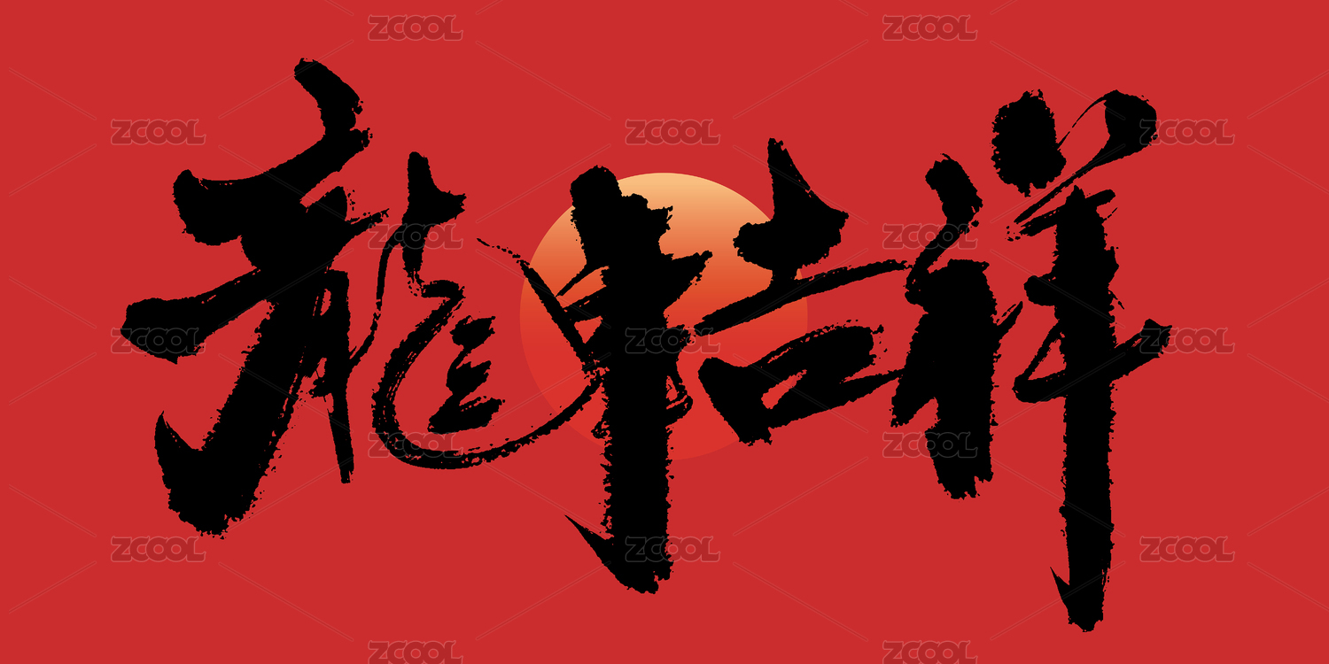 中国龙年金龙福龙珠祥云中国红纹样插画