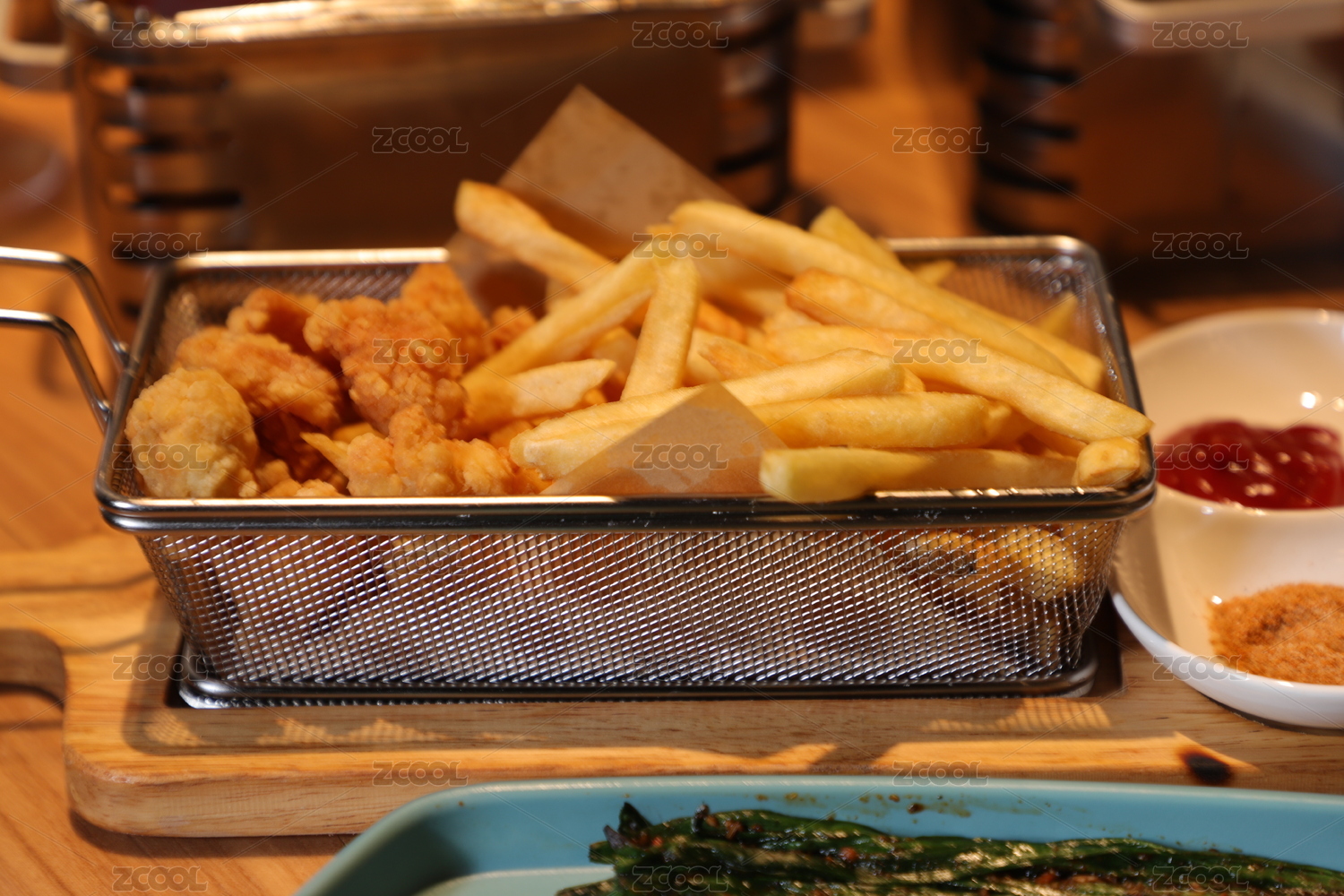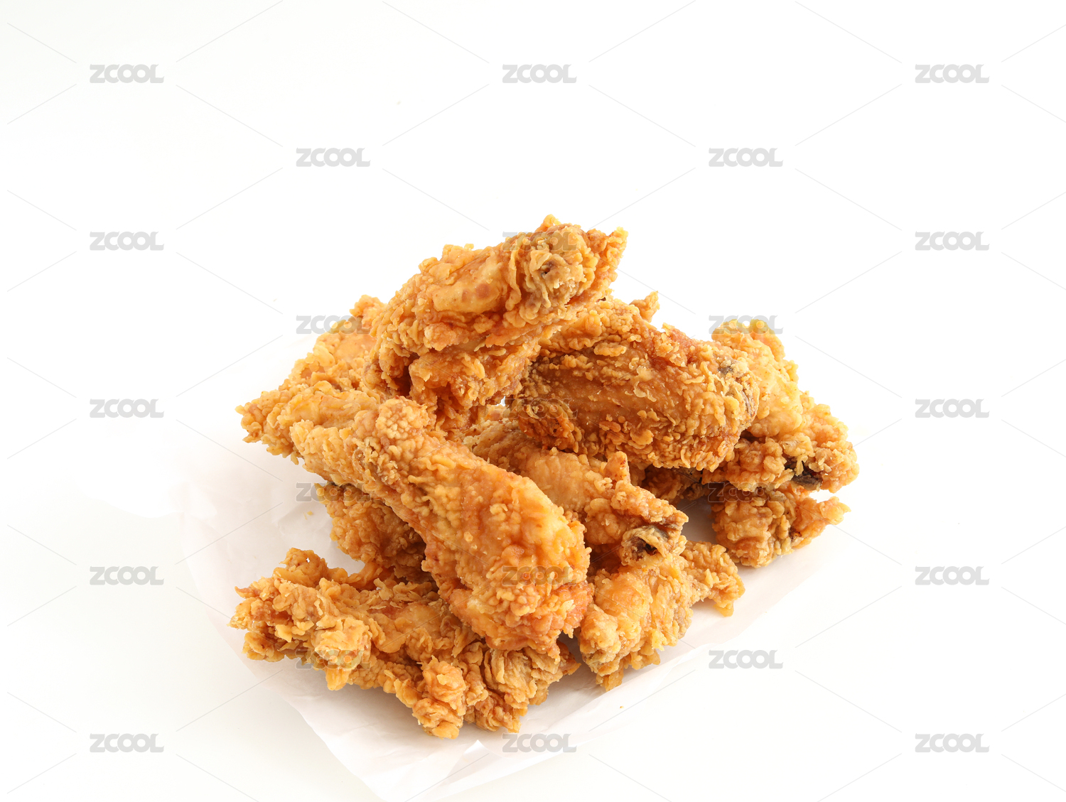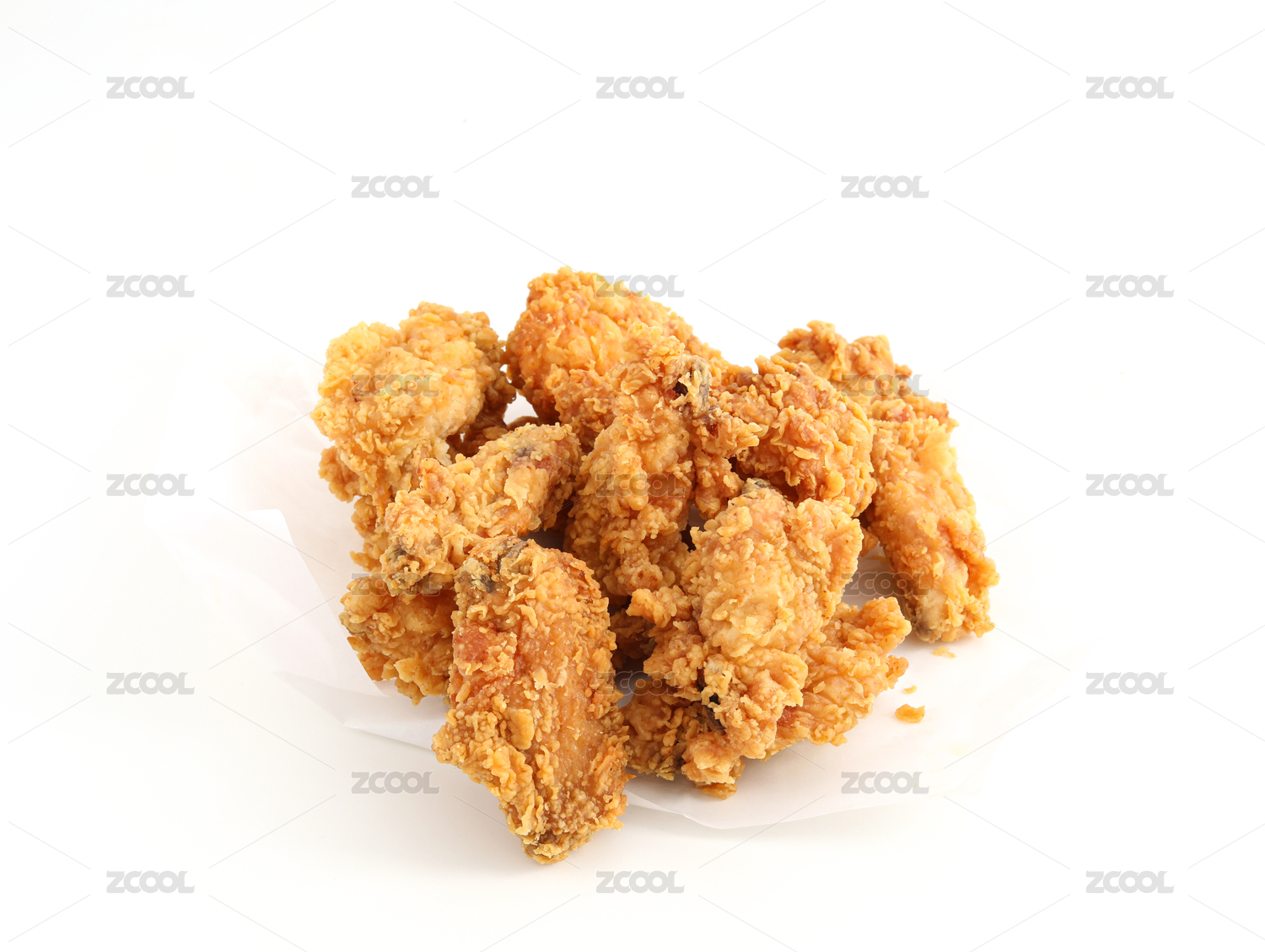 白色桌面上的一堆美食小吃宵夜炸鸡炸鸡块