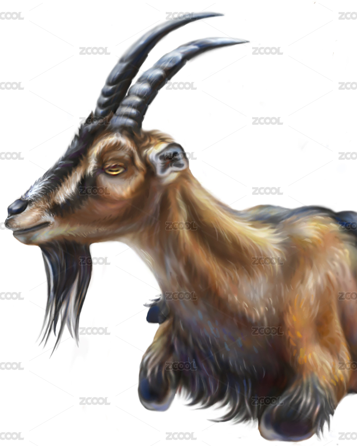 羊羚羊动物家畜自然褐色黄色写实手绘插画