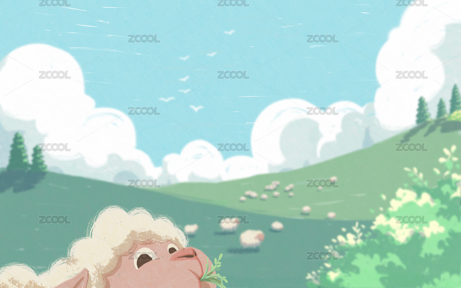 羊风景插画