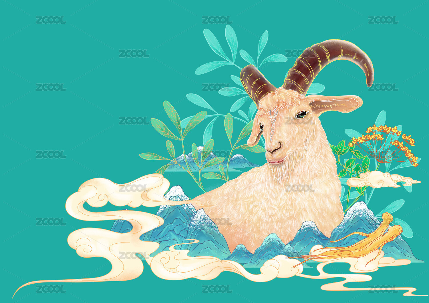 蒙古族风格羊插画
