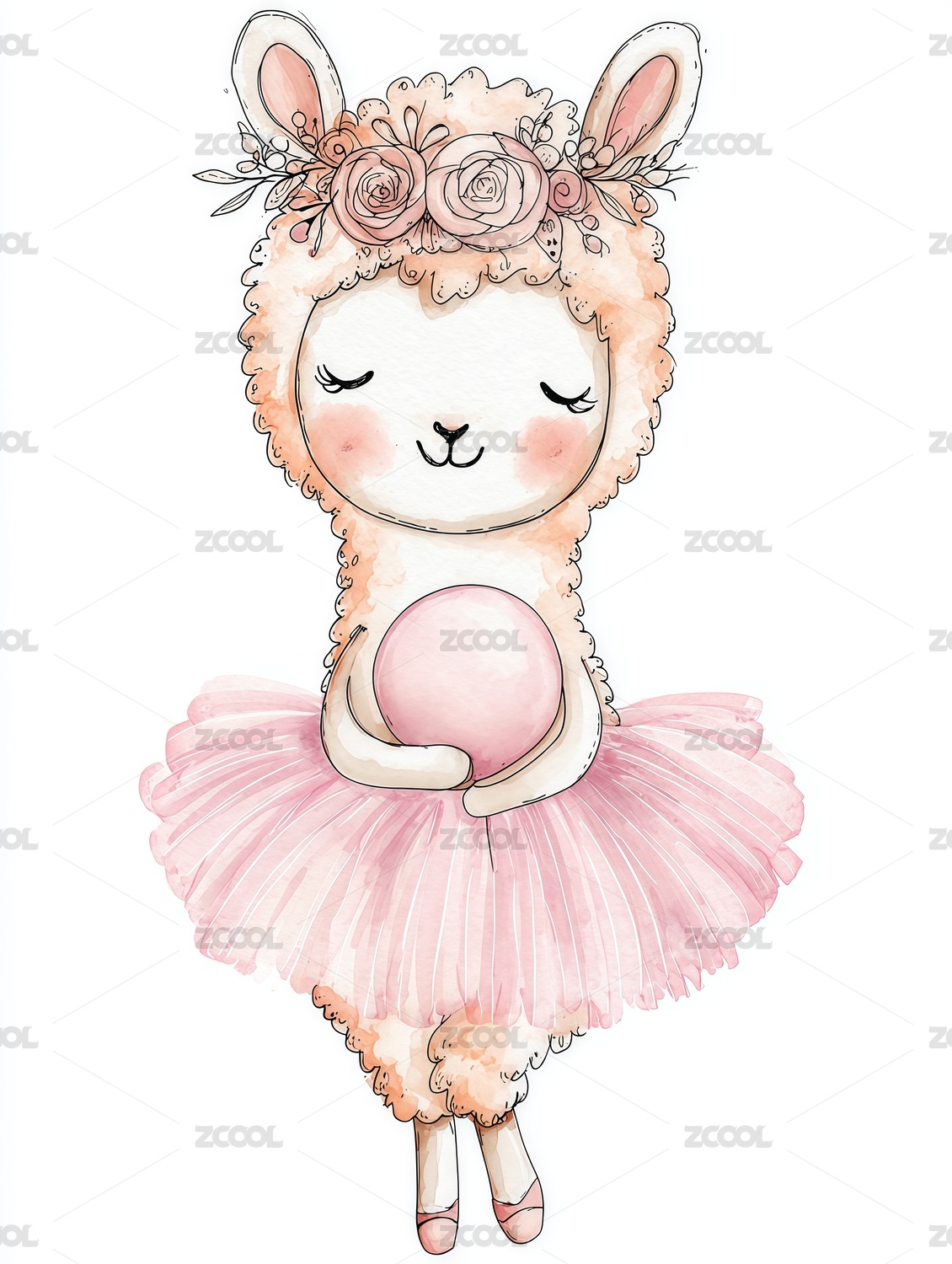 手绘卡通绵羊插画