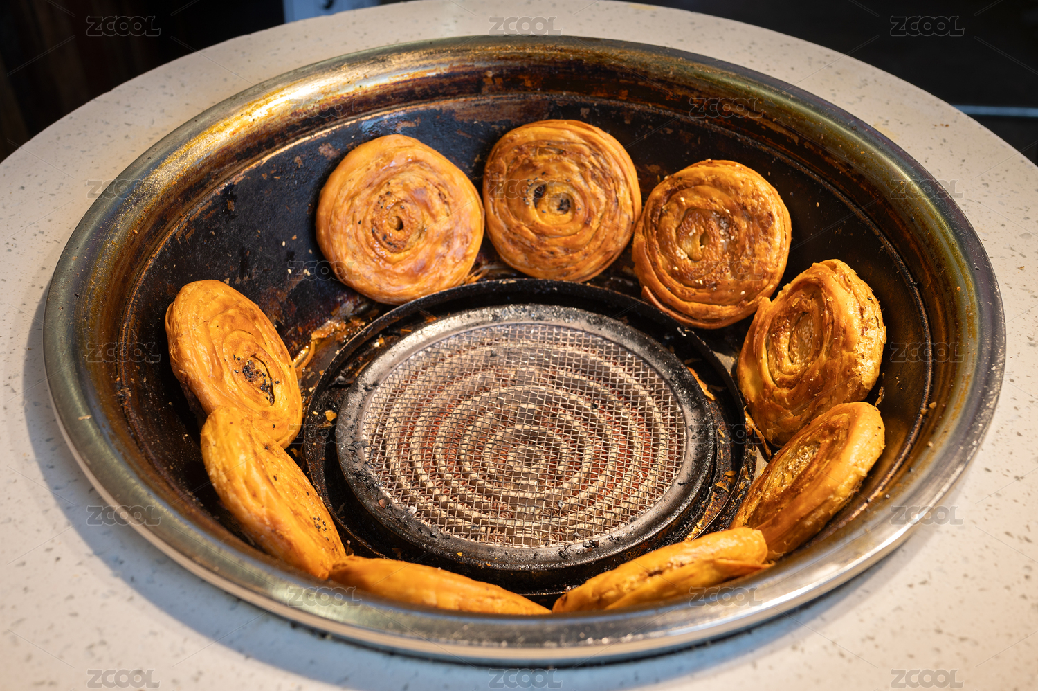 中国新疆特色食品馕坑里烘烤的馕
