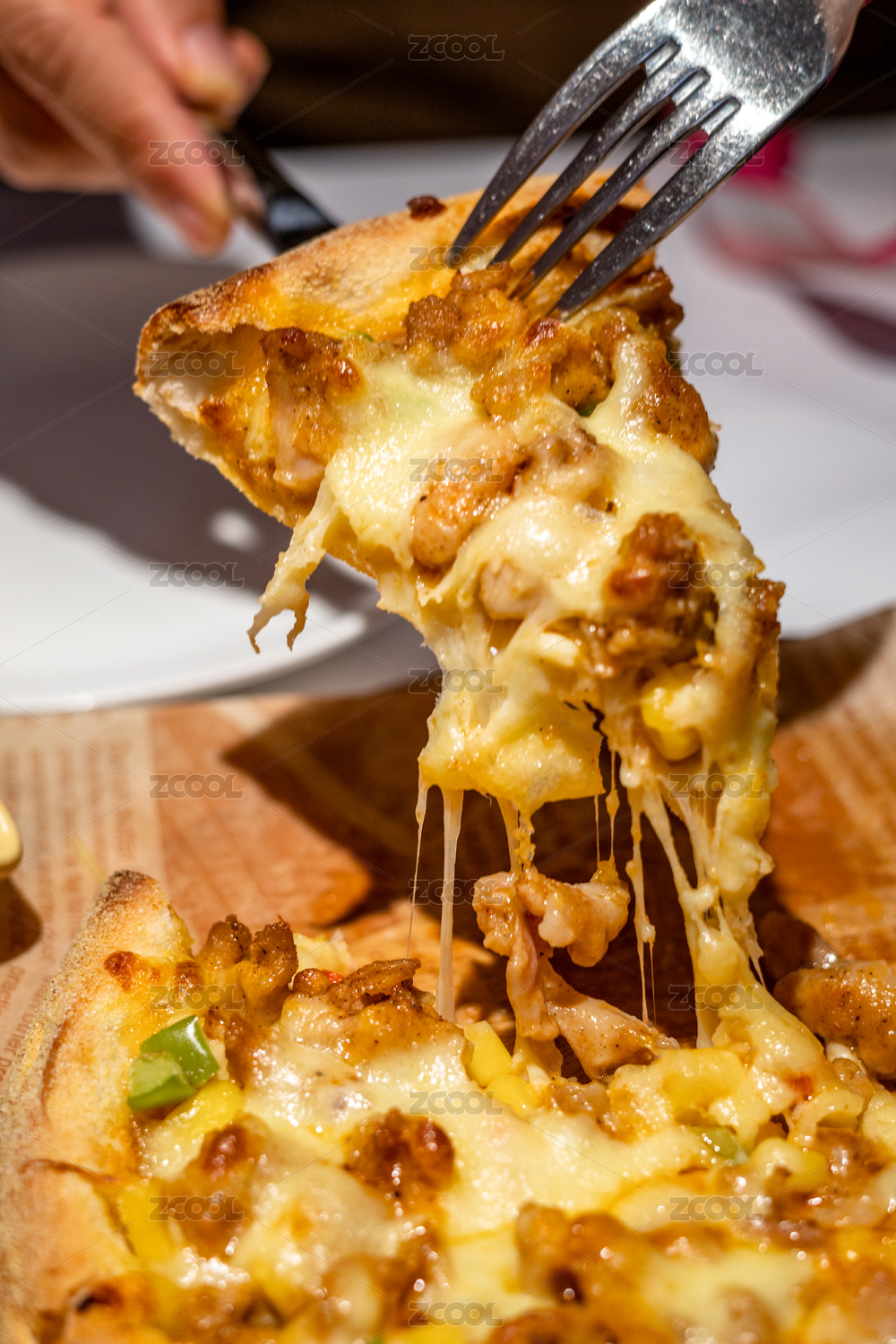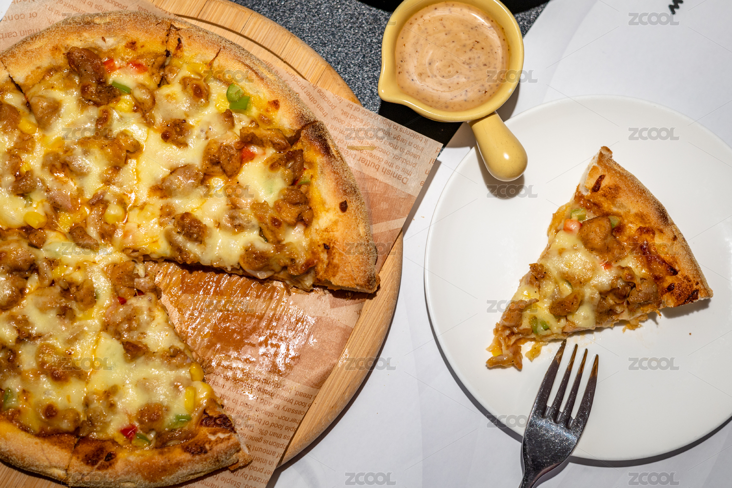 桌面上的一份披萨