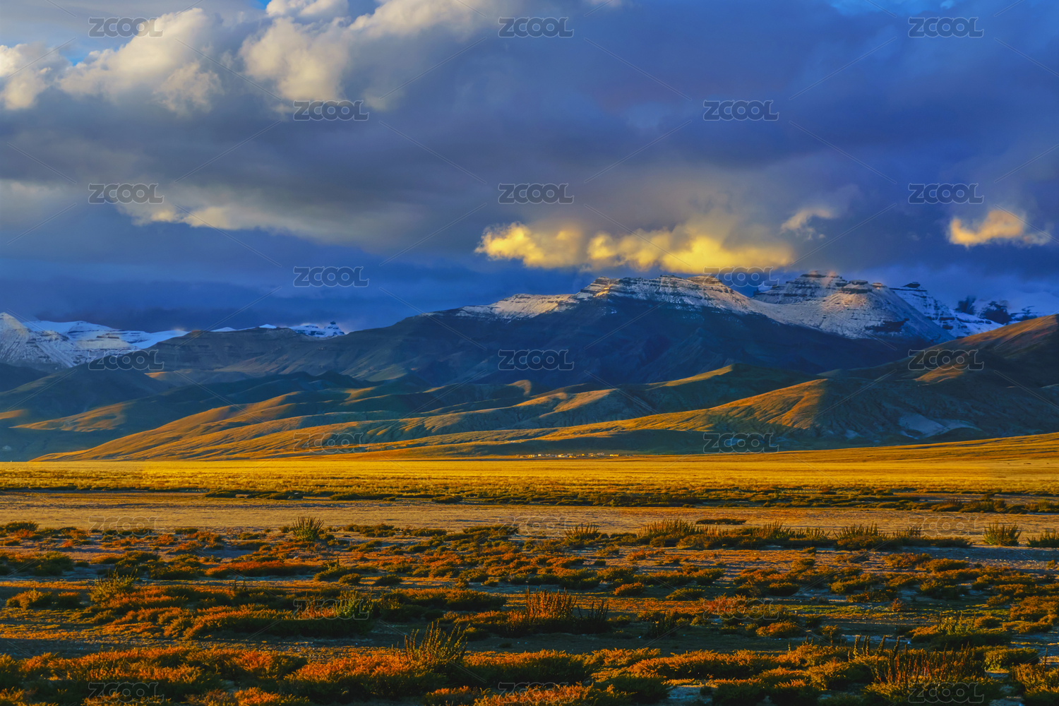 中国西藏阿里大北线亚热去仁多的路上的草原与高