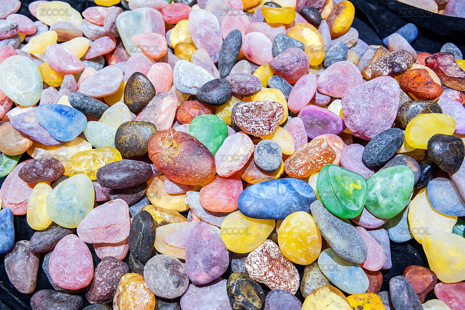 多彩的琥珀蜜蜡和琥珀原矿石