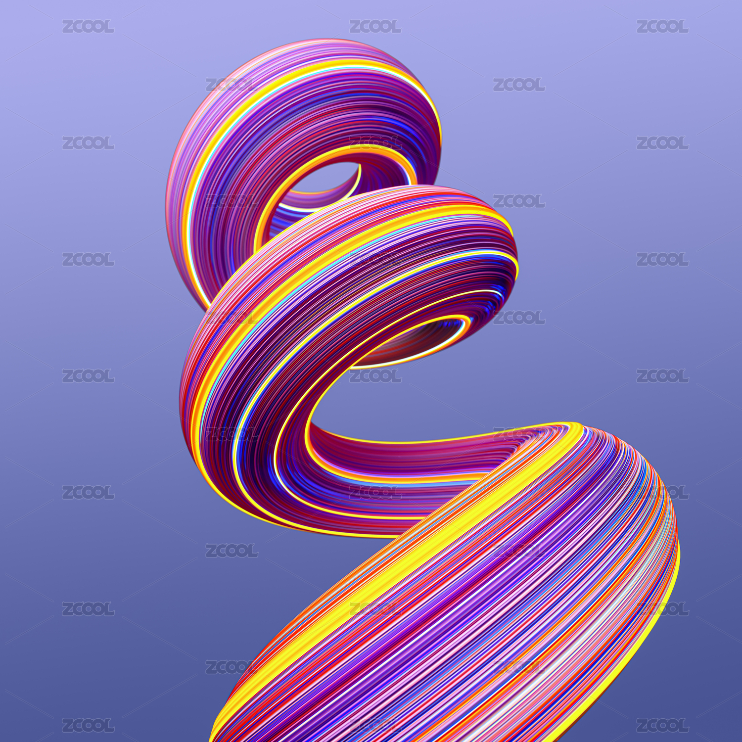 三维渲染的螺旋多彩流动线条抽象背景壁纸
