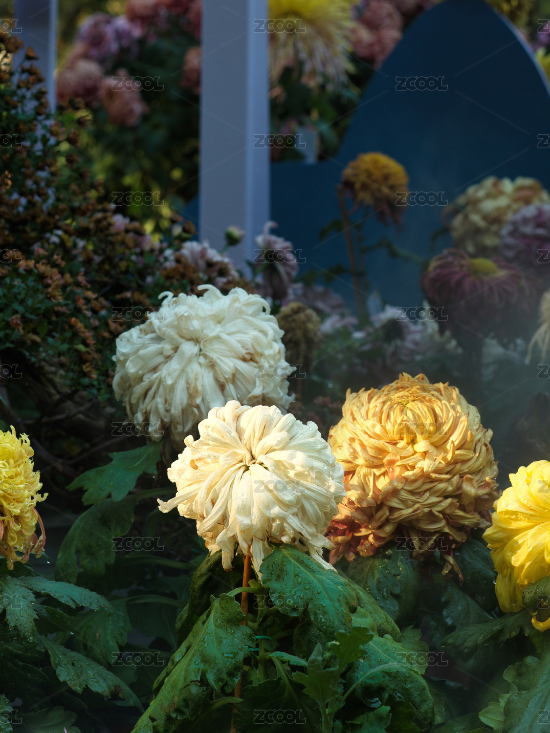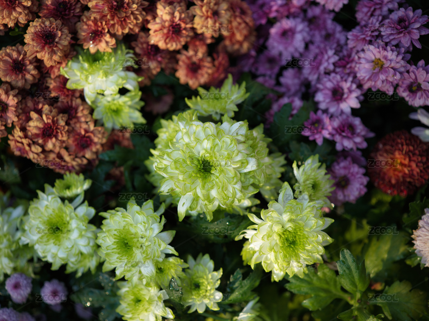 多彩菊花花园绽放