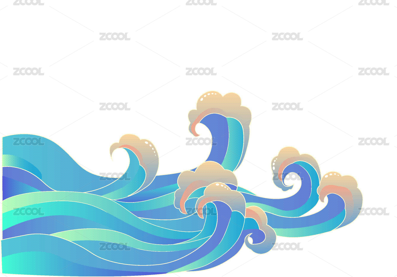 多彩手绘风格海浪图案