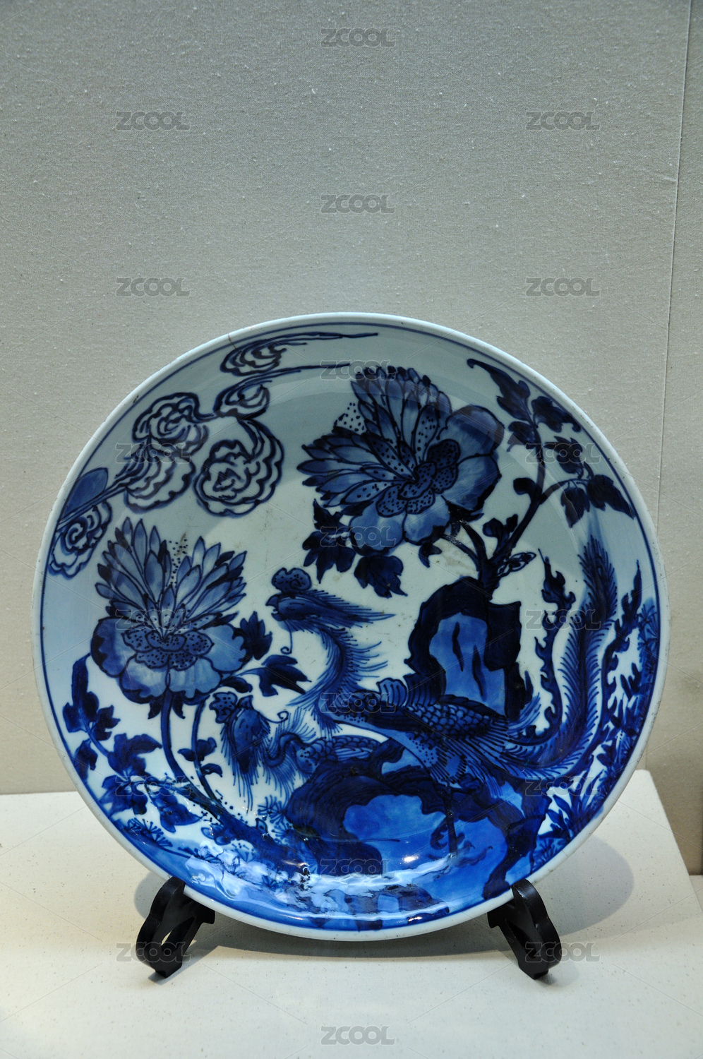 雍正款青花凤凰牡丹纹盘