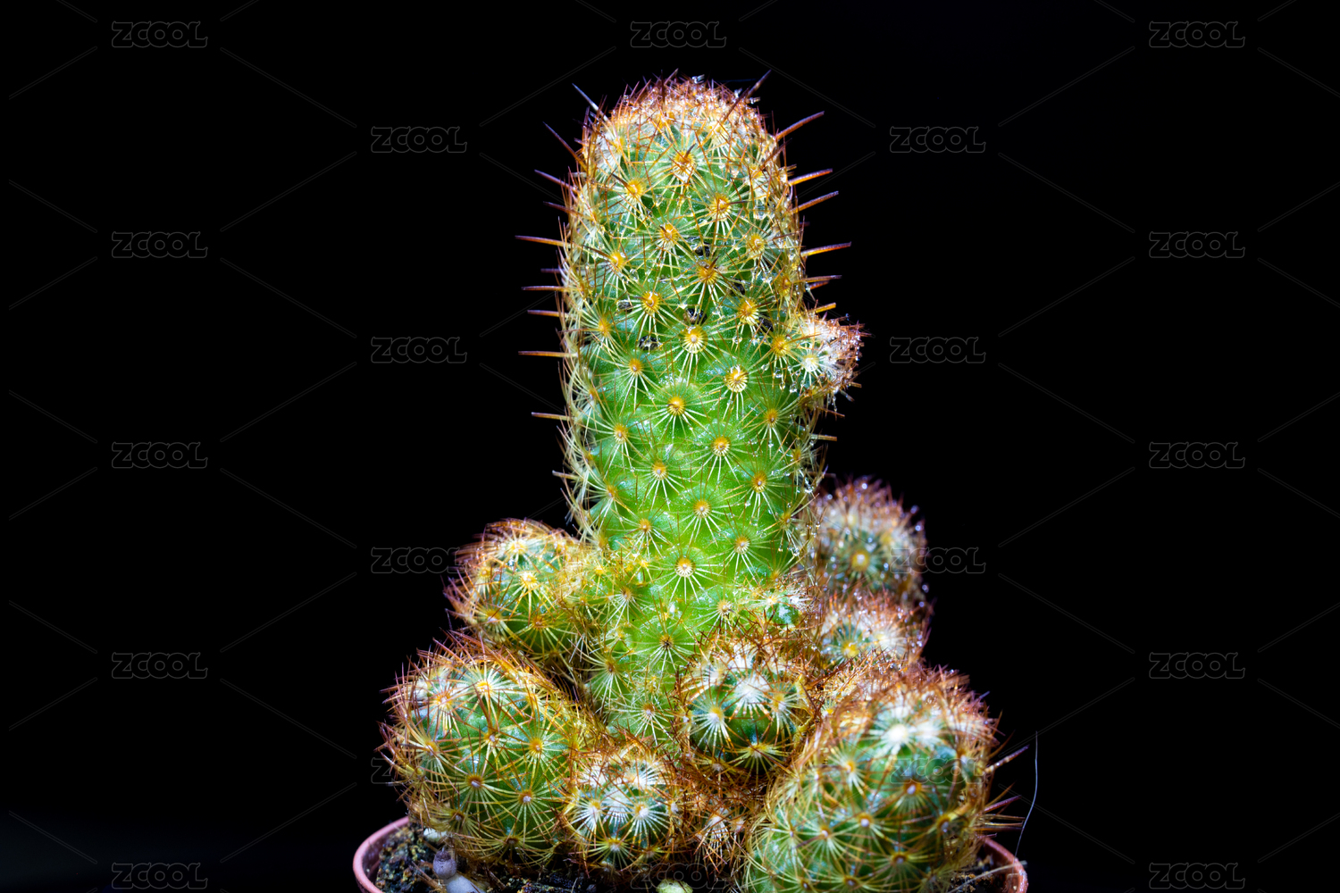 黑色背景的金手指仙人掌植物盆栽