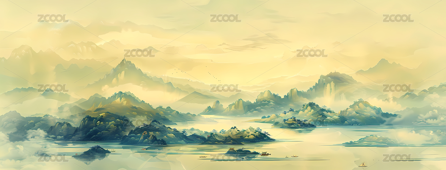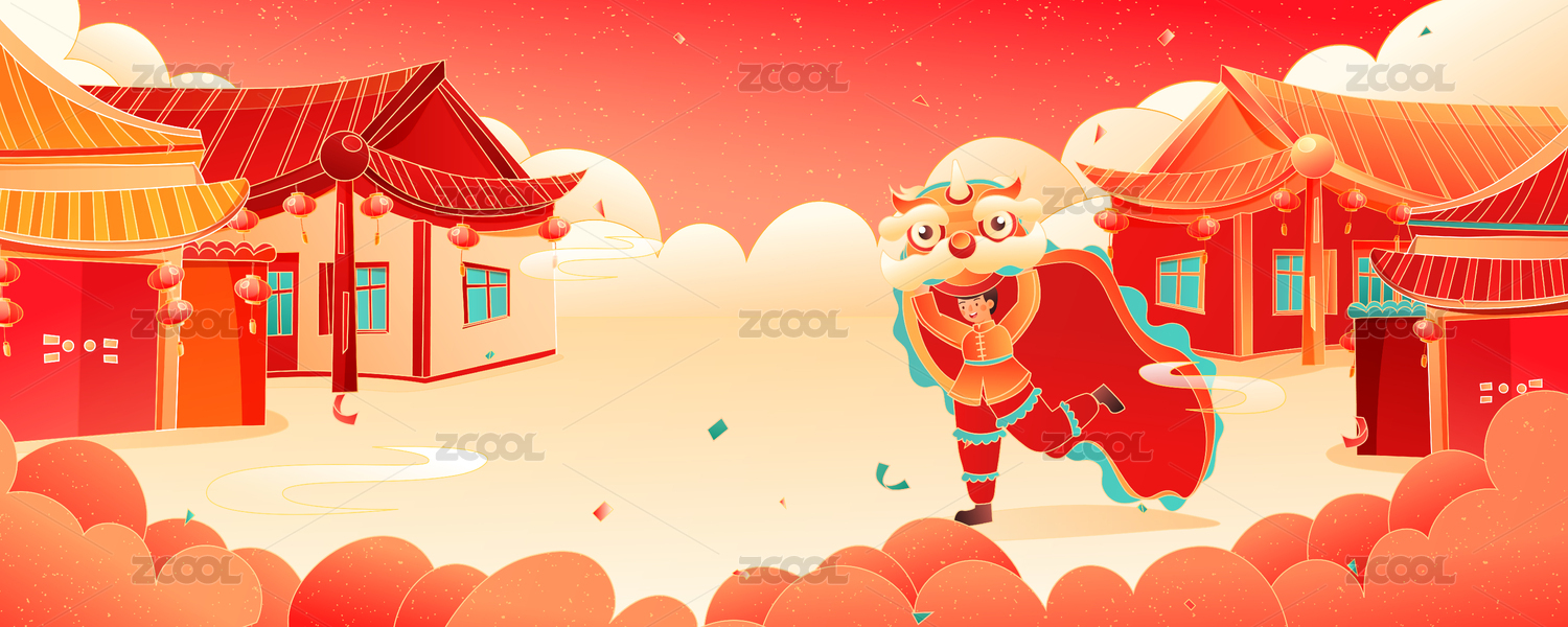 卡通2020年元旦除夕新年春节舞狮中国风背景矢量插画