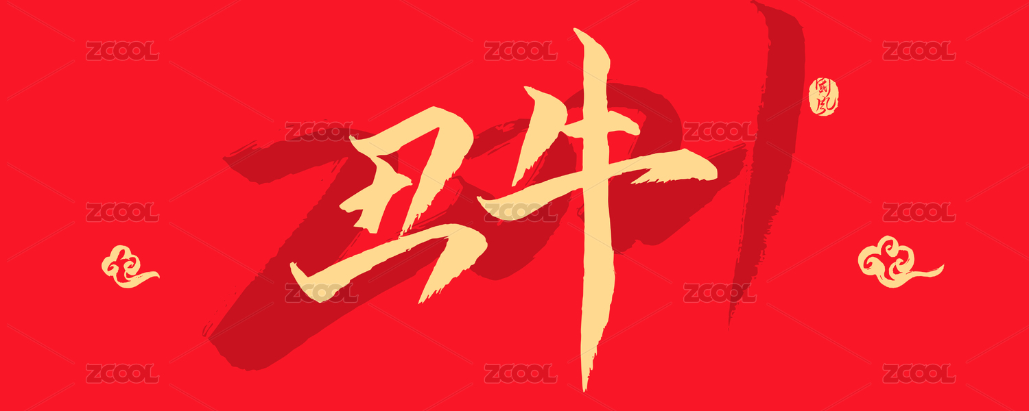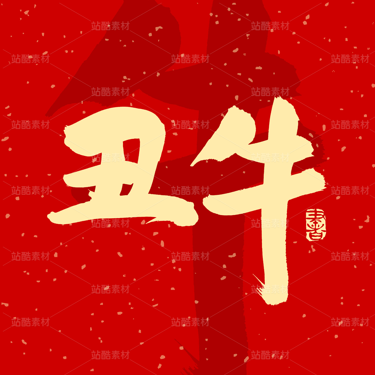 十二生肖丑牛金色发光喜庆中国风矢量毛笔字