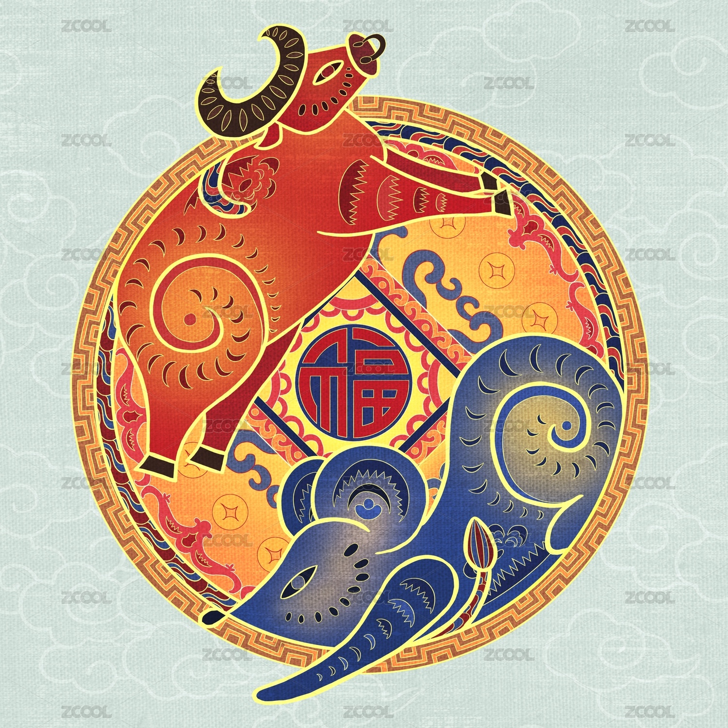 国潮十二生肖丑牛时尚印花装饰纹样卡通形象
