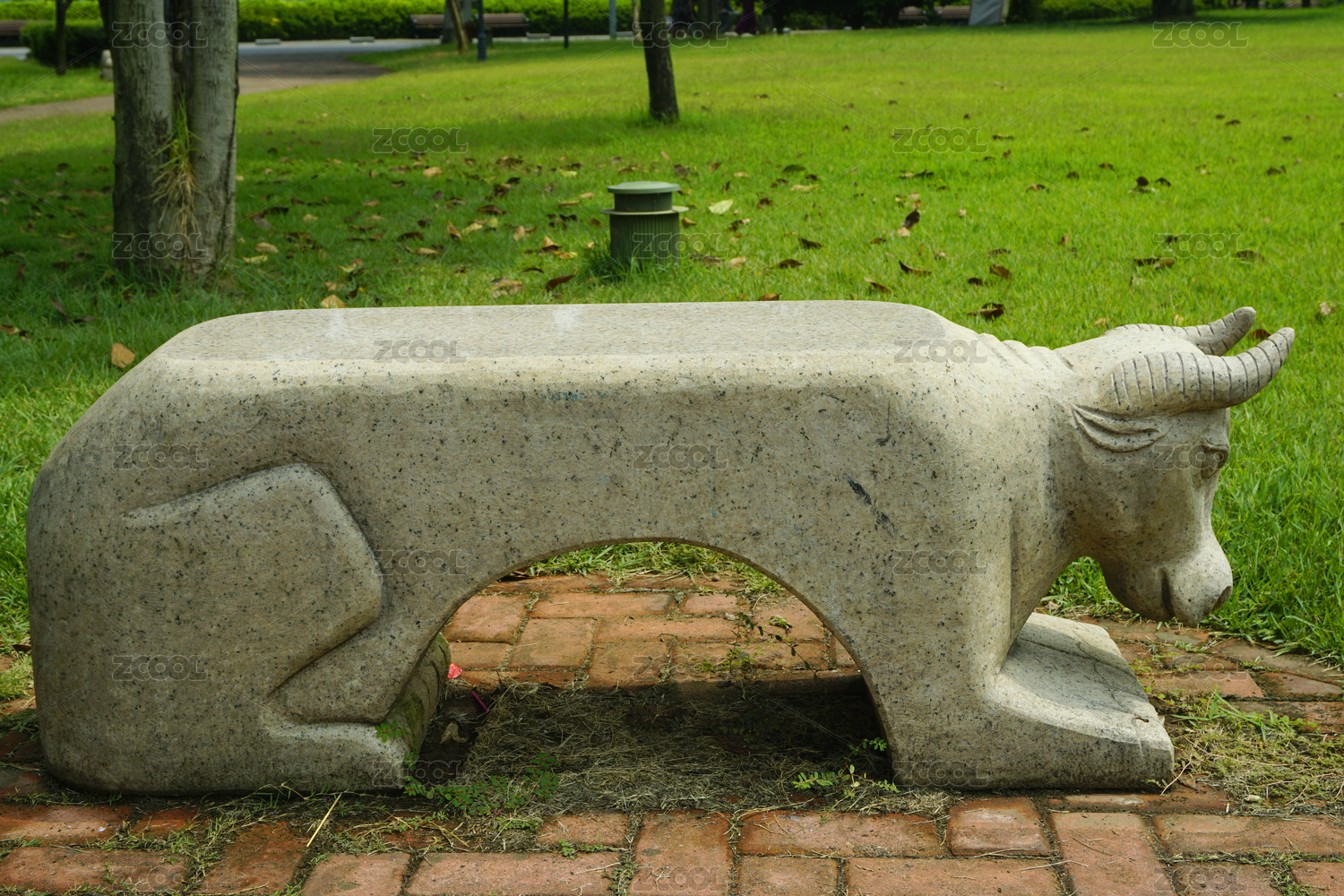 长沙橘子洲公园十二生肖石刻座椅 丑牛
