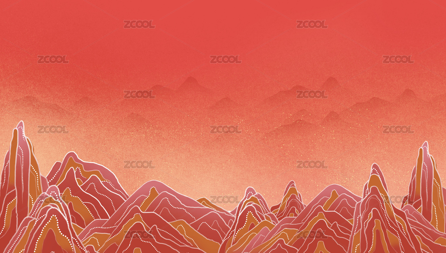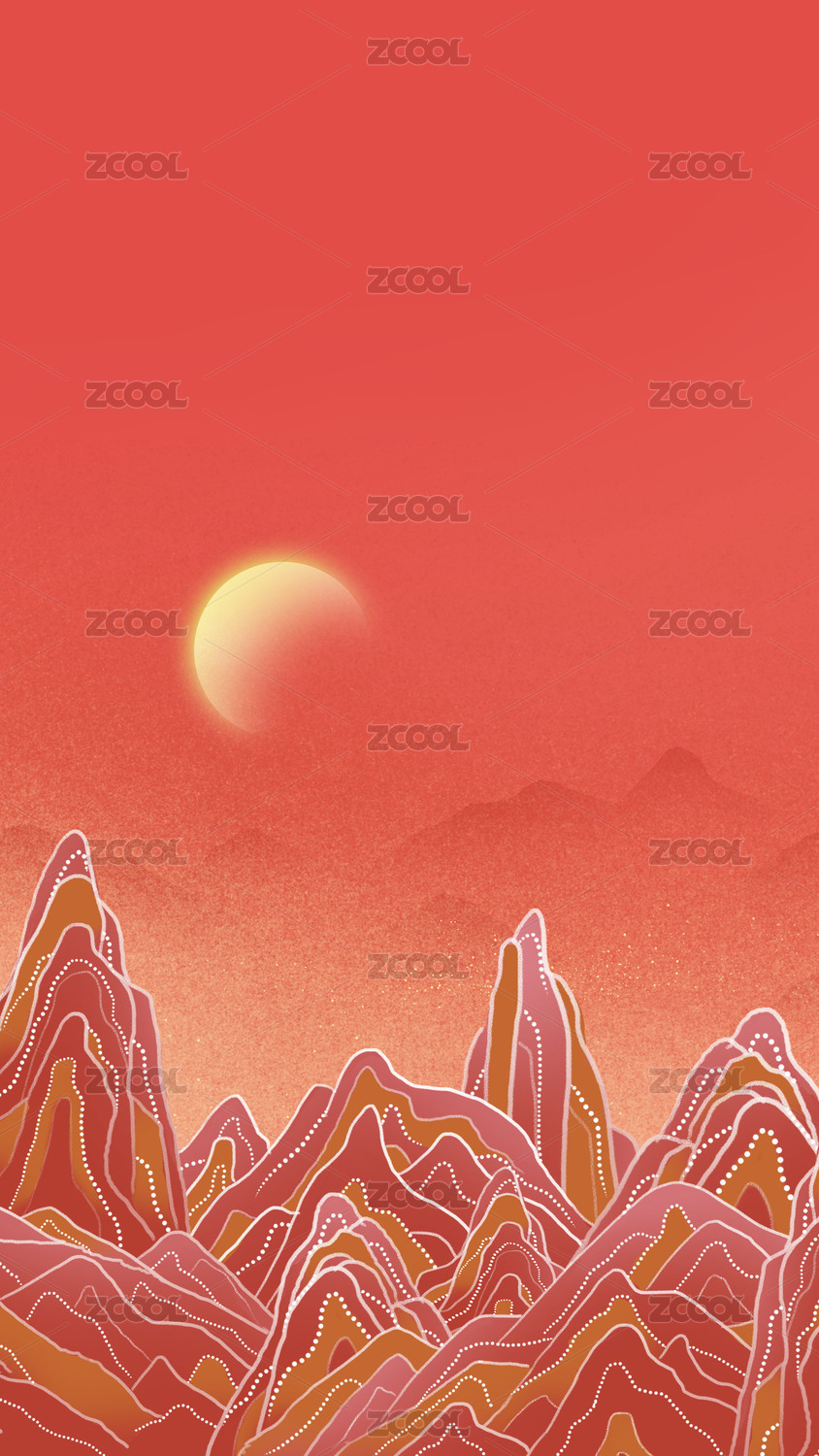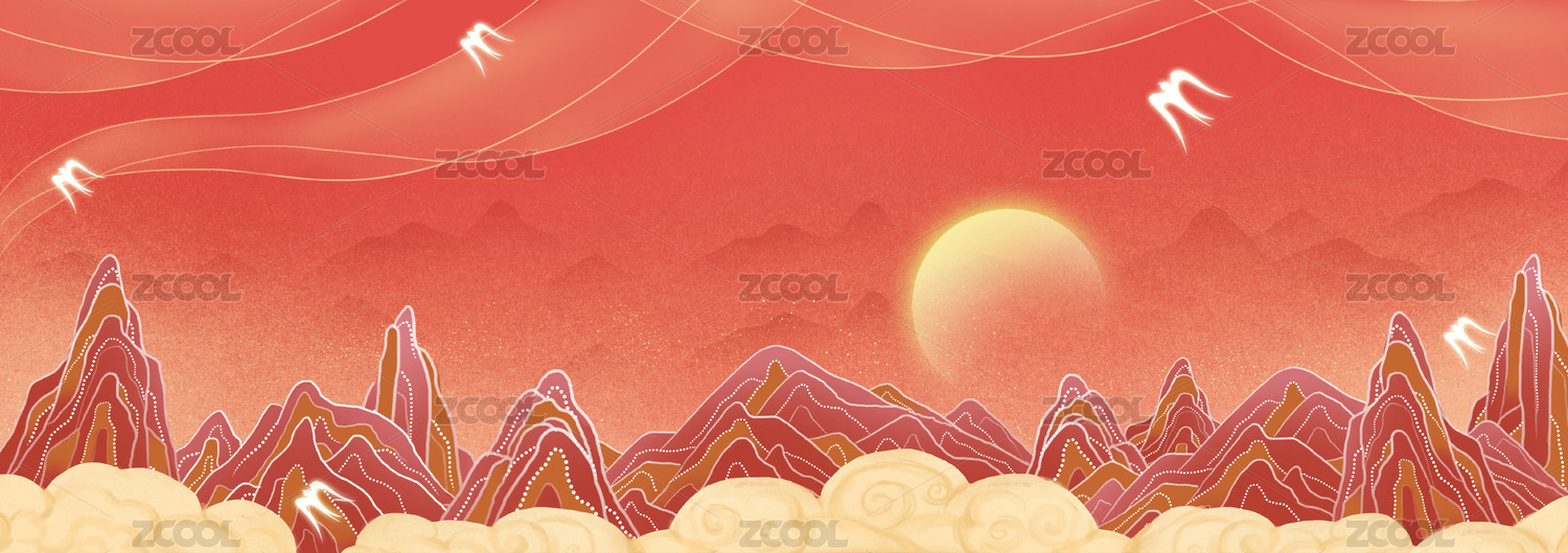 红山岩石国潮风敦煌壁画中国风诗意江山山峰