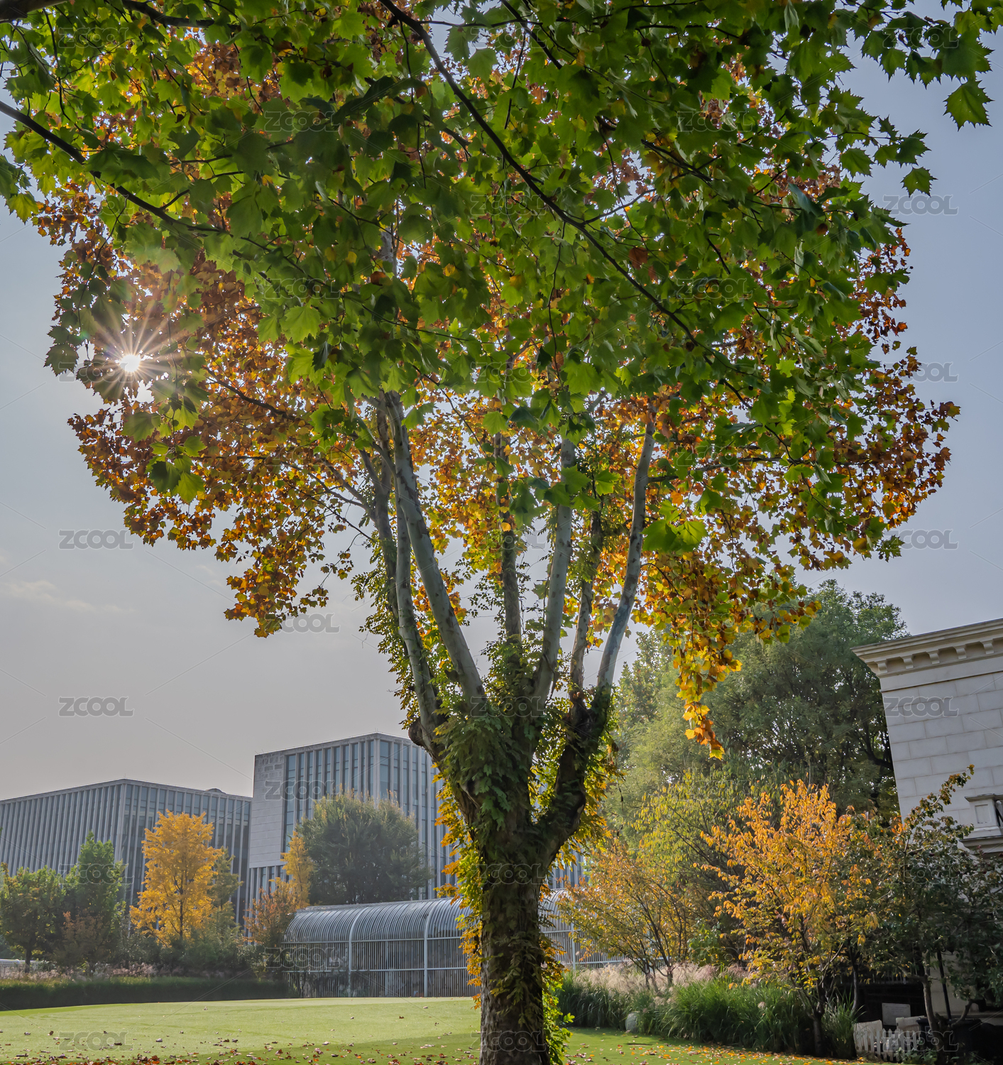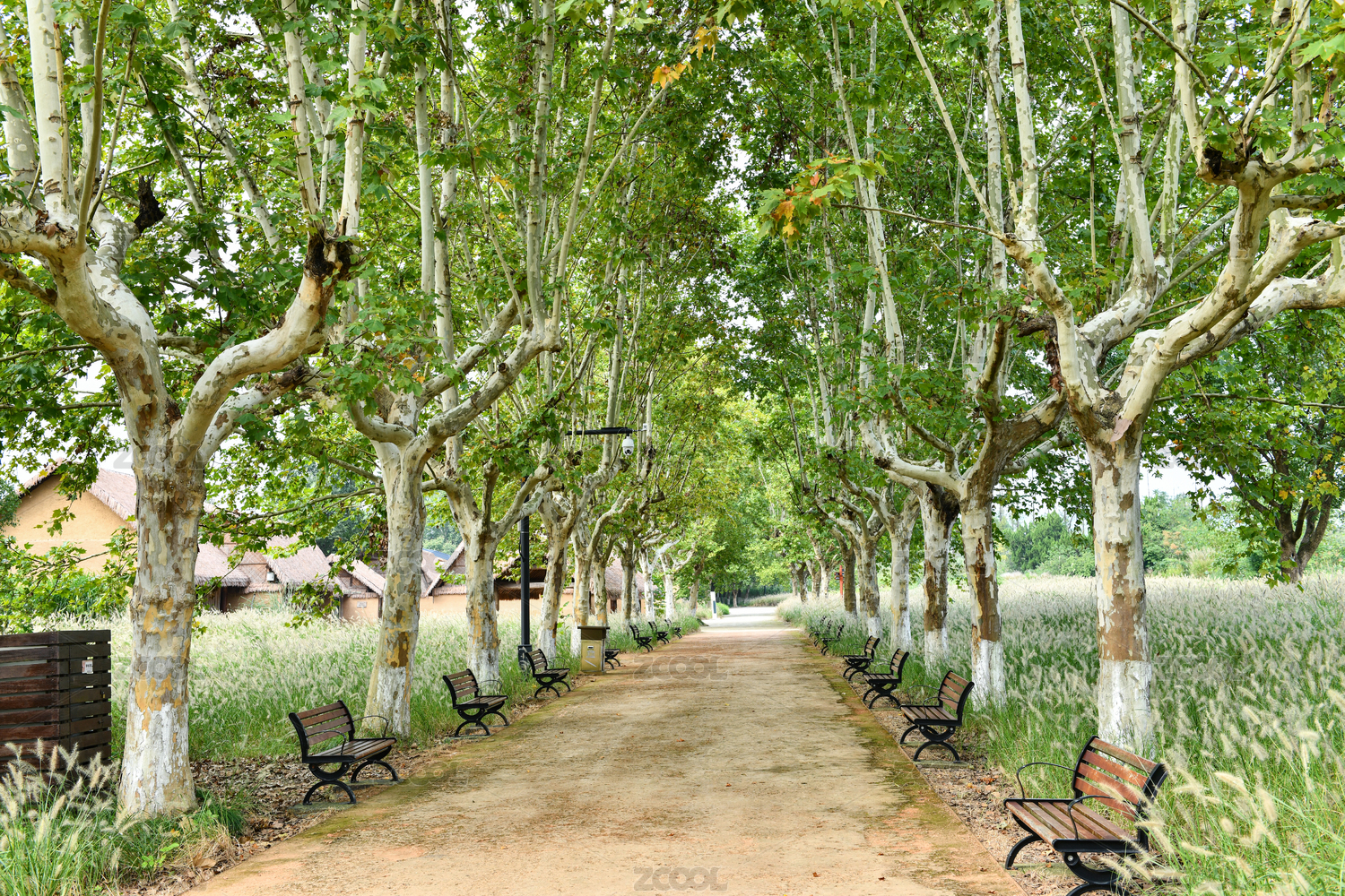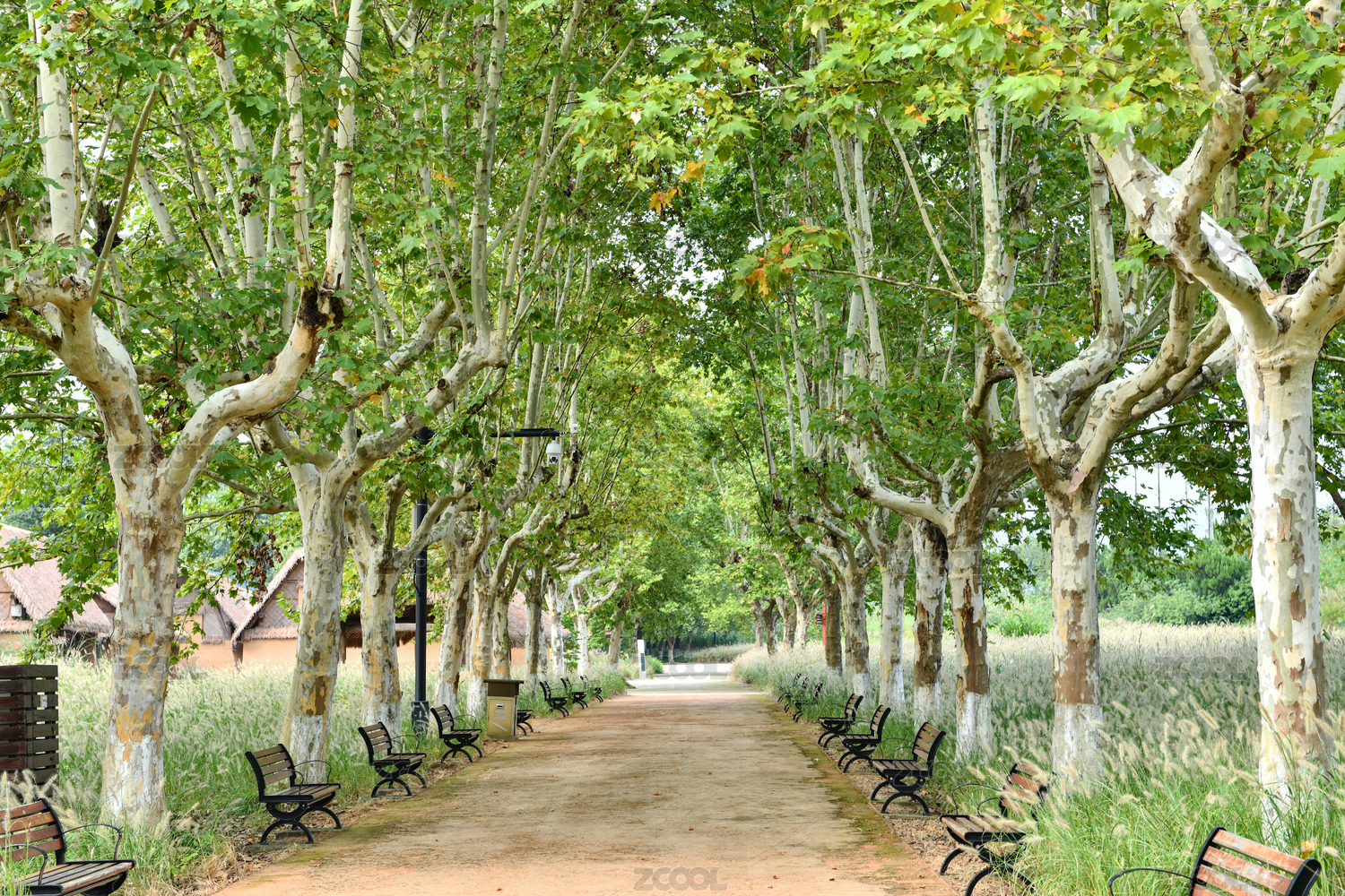 笔直延伸的宽阔马路和路边两侧的法国梧桐