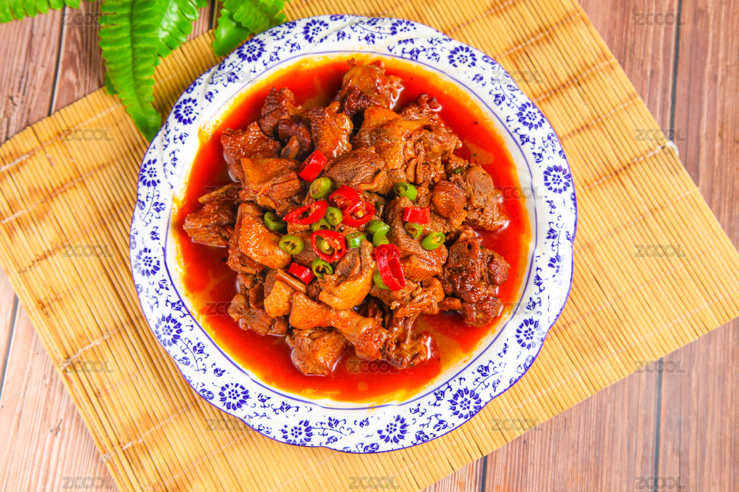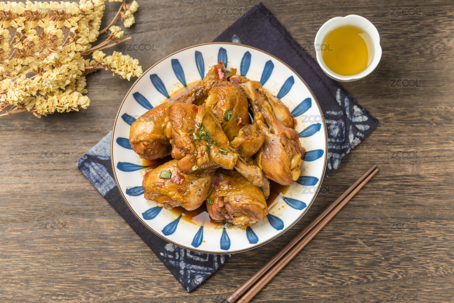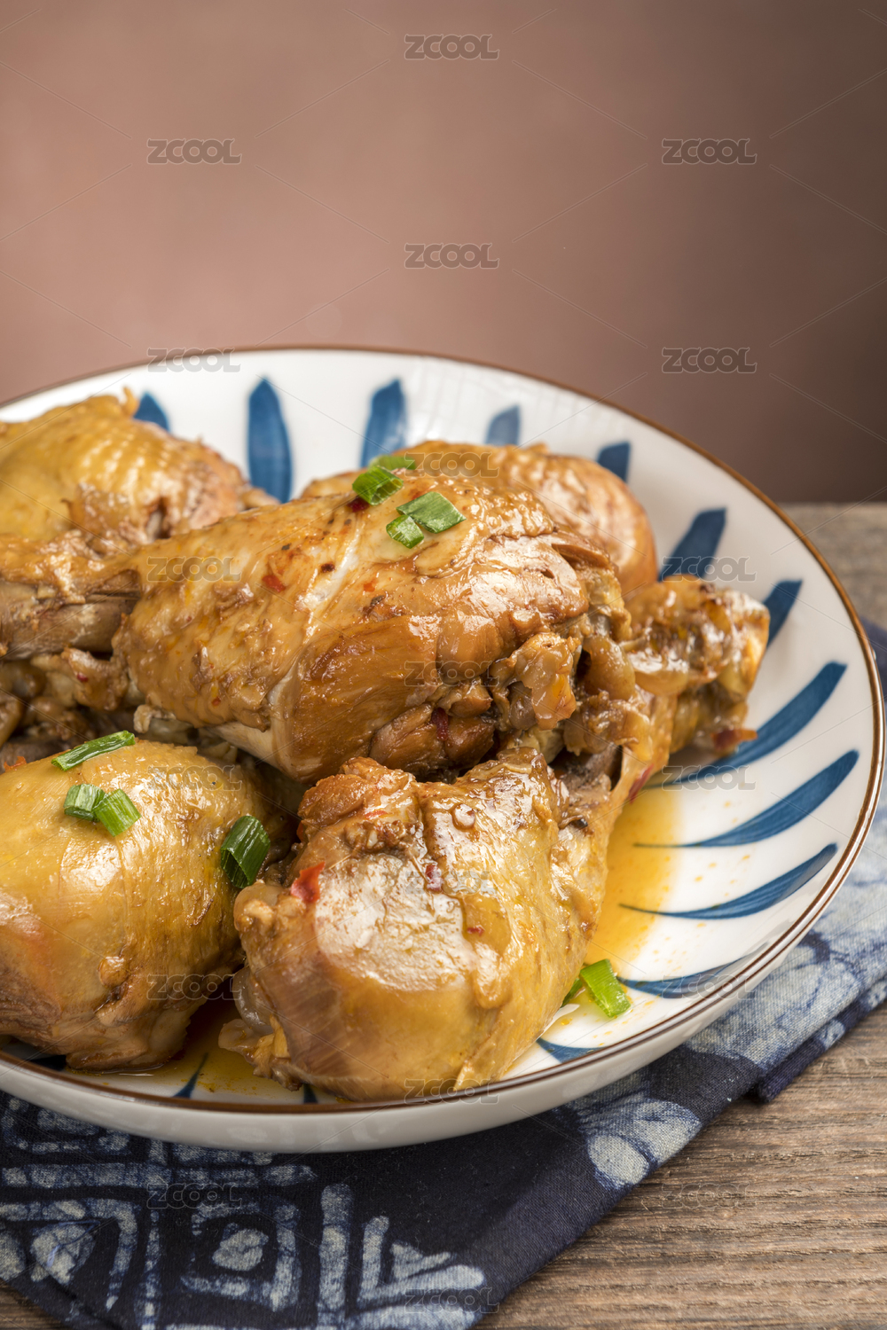 一盘红烧鸡腿炖鸡腿特写木桌面背景