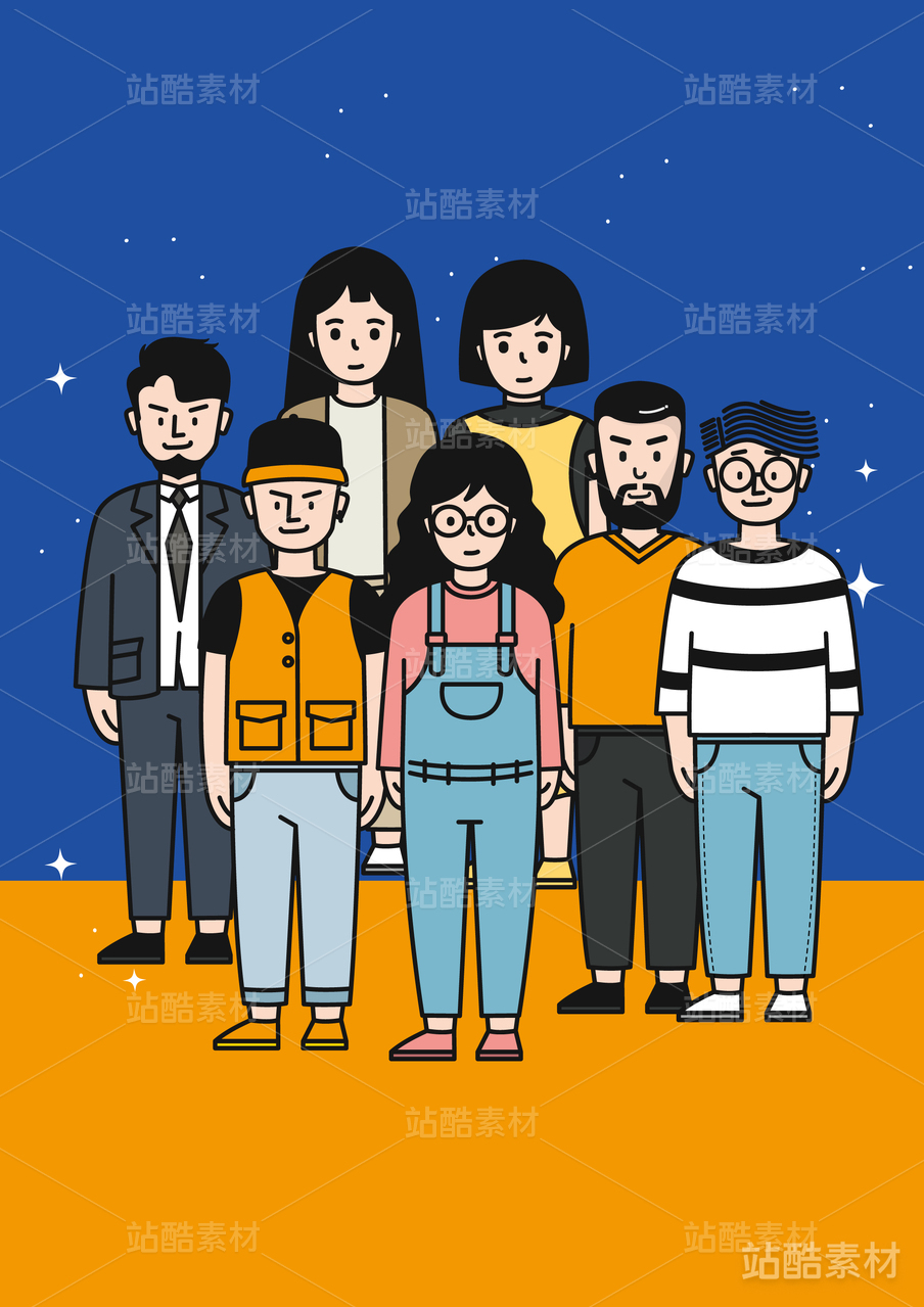 矢量7个人物卡通IP插画企业团建形