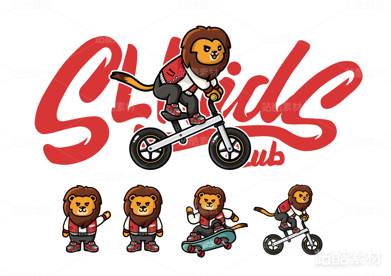 矢量老虎卡通IP形象单车滑板运动插