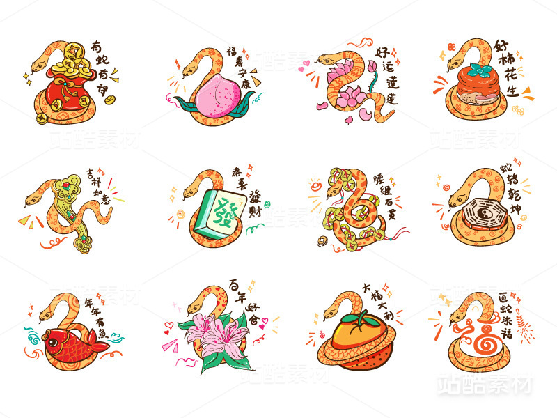 蛇年卡通IP插画贴纸 表情包