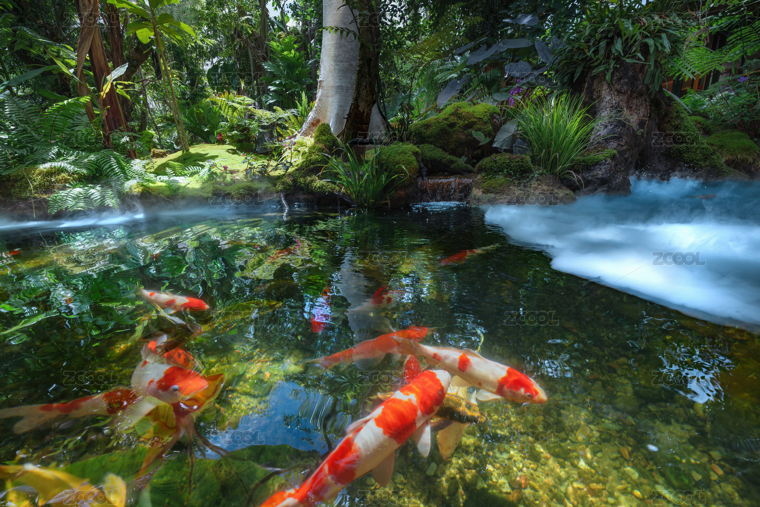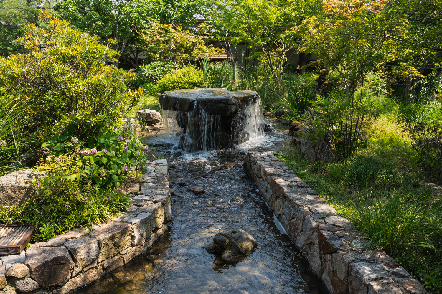 绿植环绕的水景小瀑布