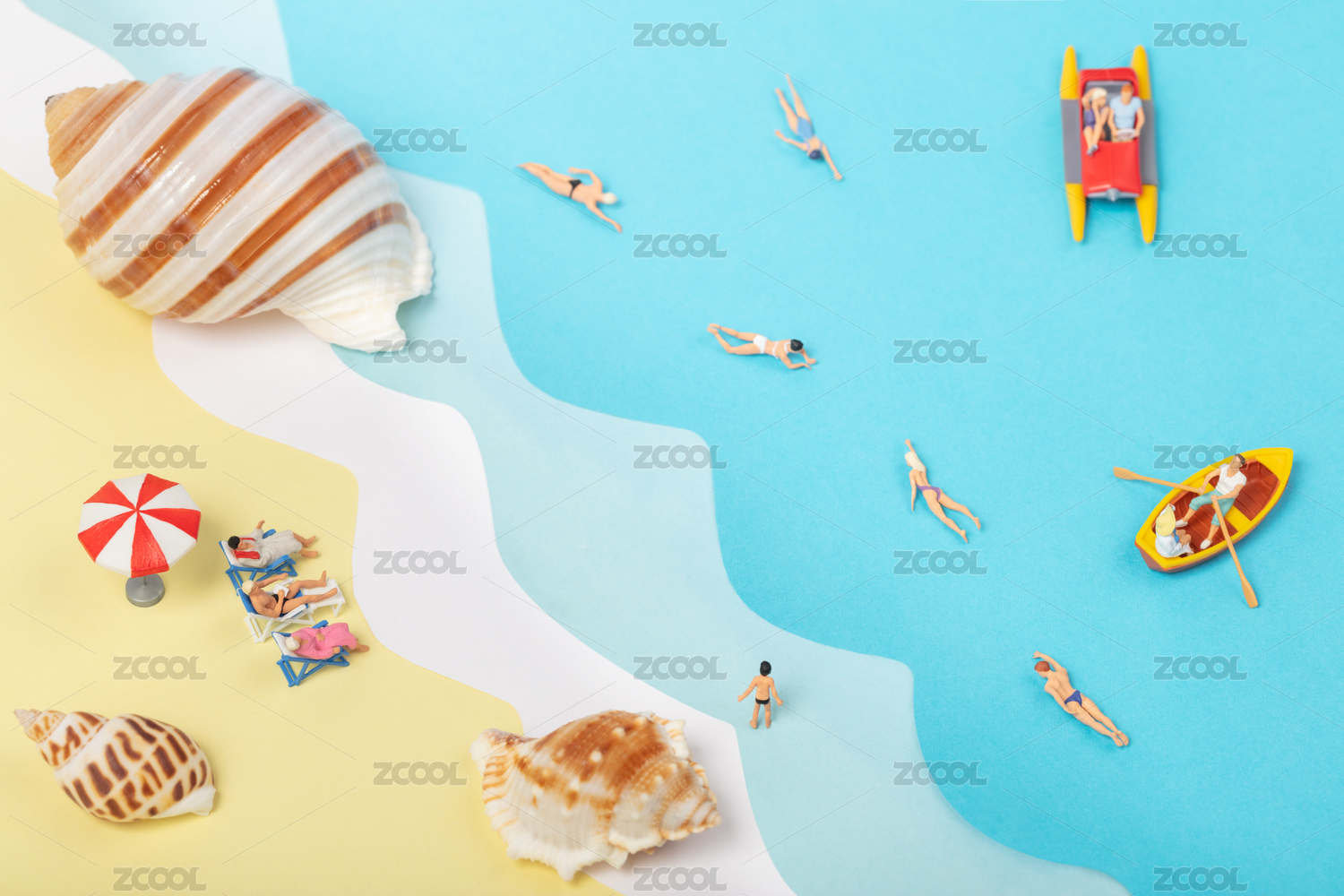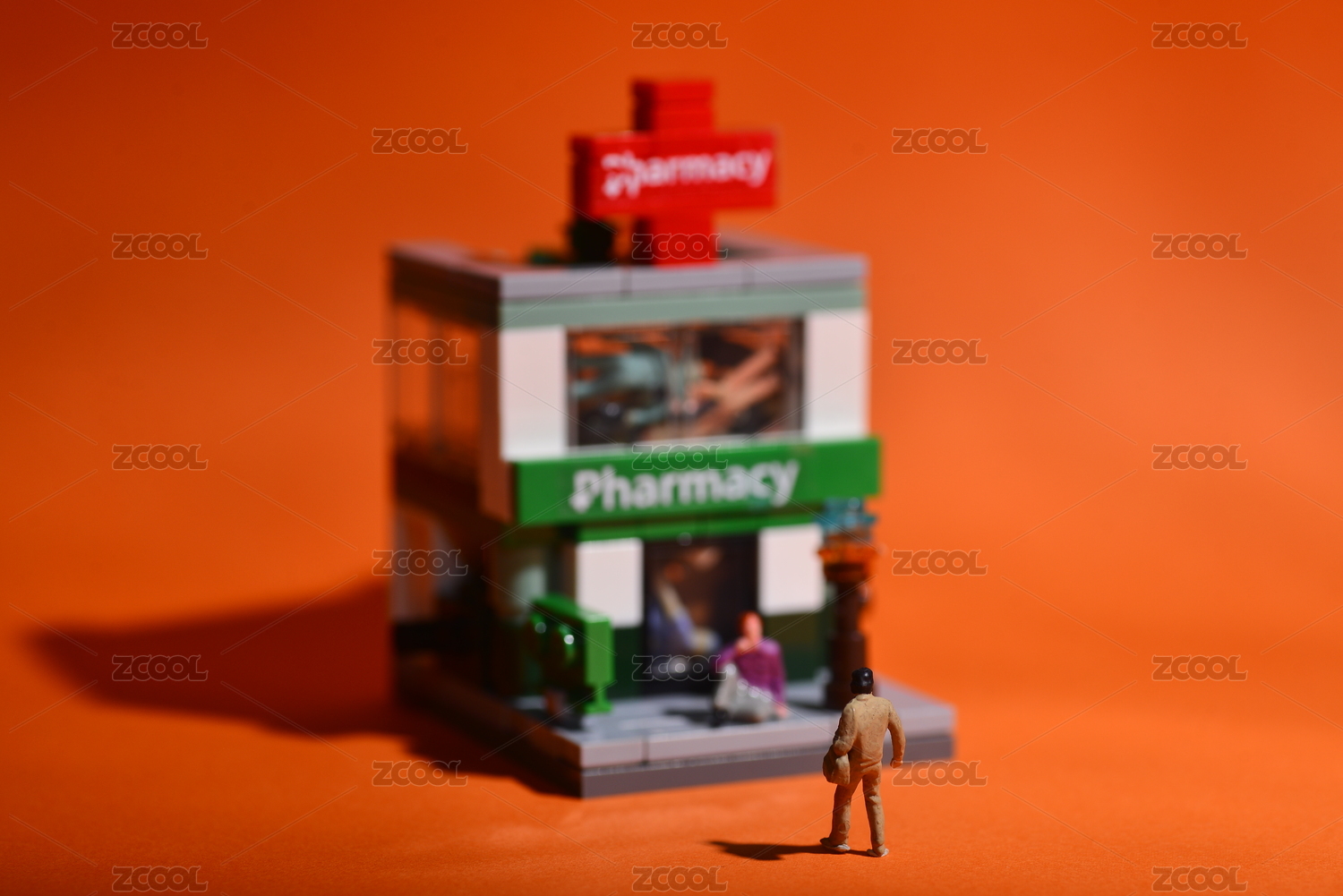 微缩场景脱发梳子上掉落的头发和清理的小人