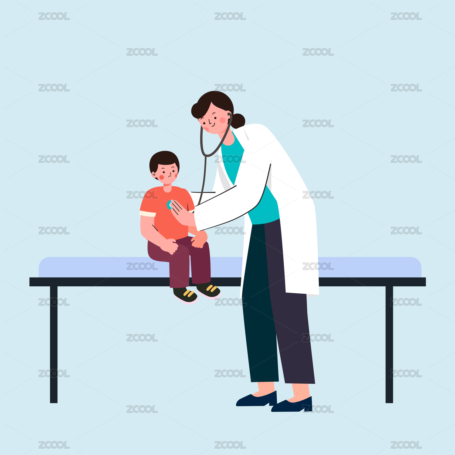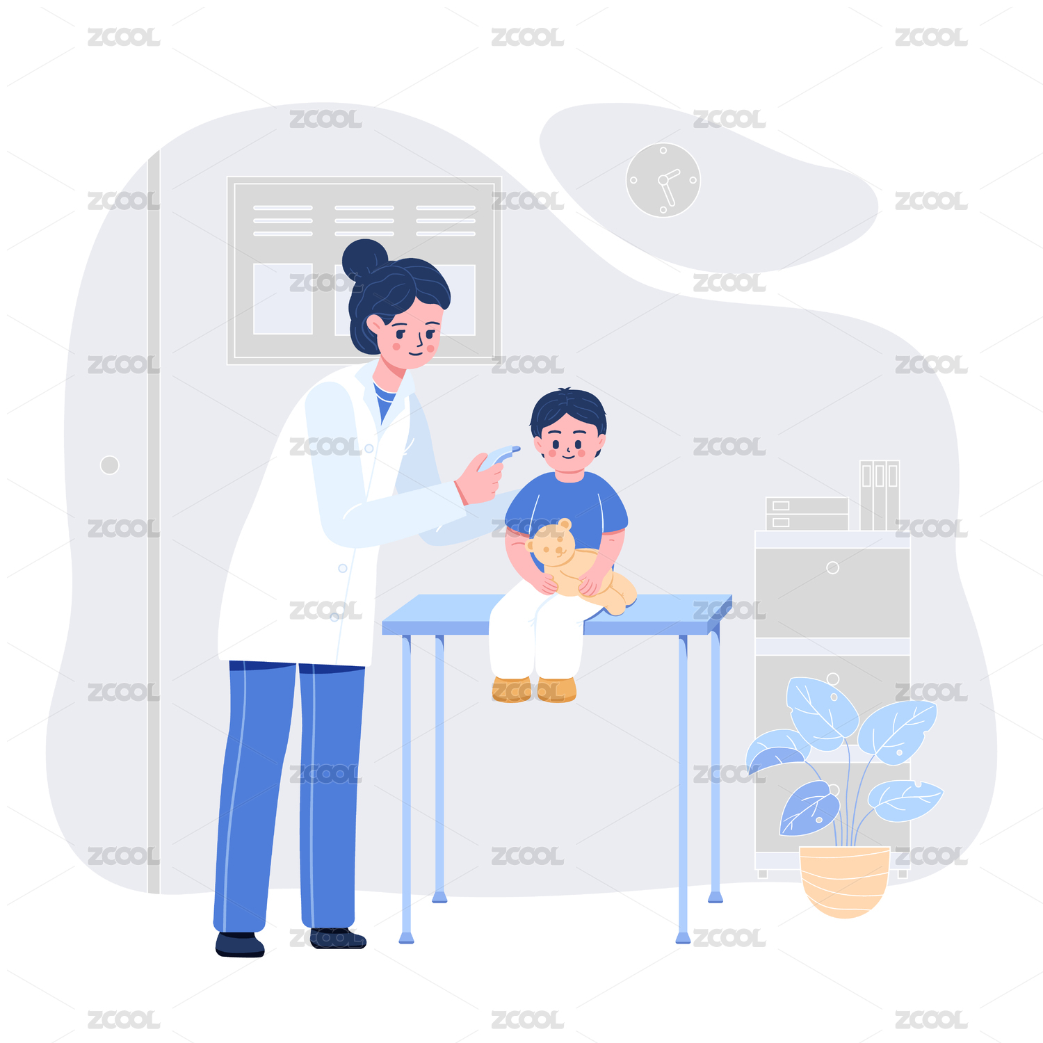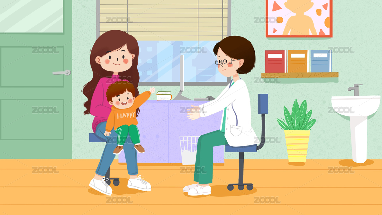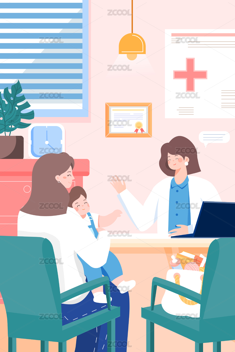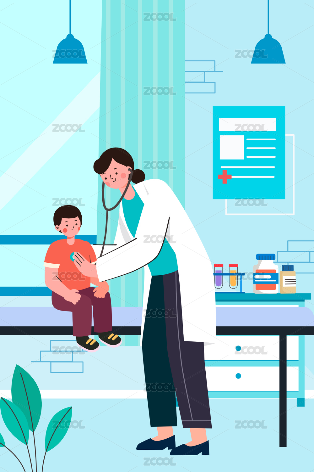 可爱卡通清新医疗看病儿科门诊儿童插画