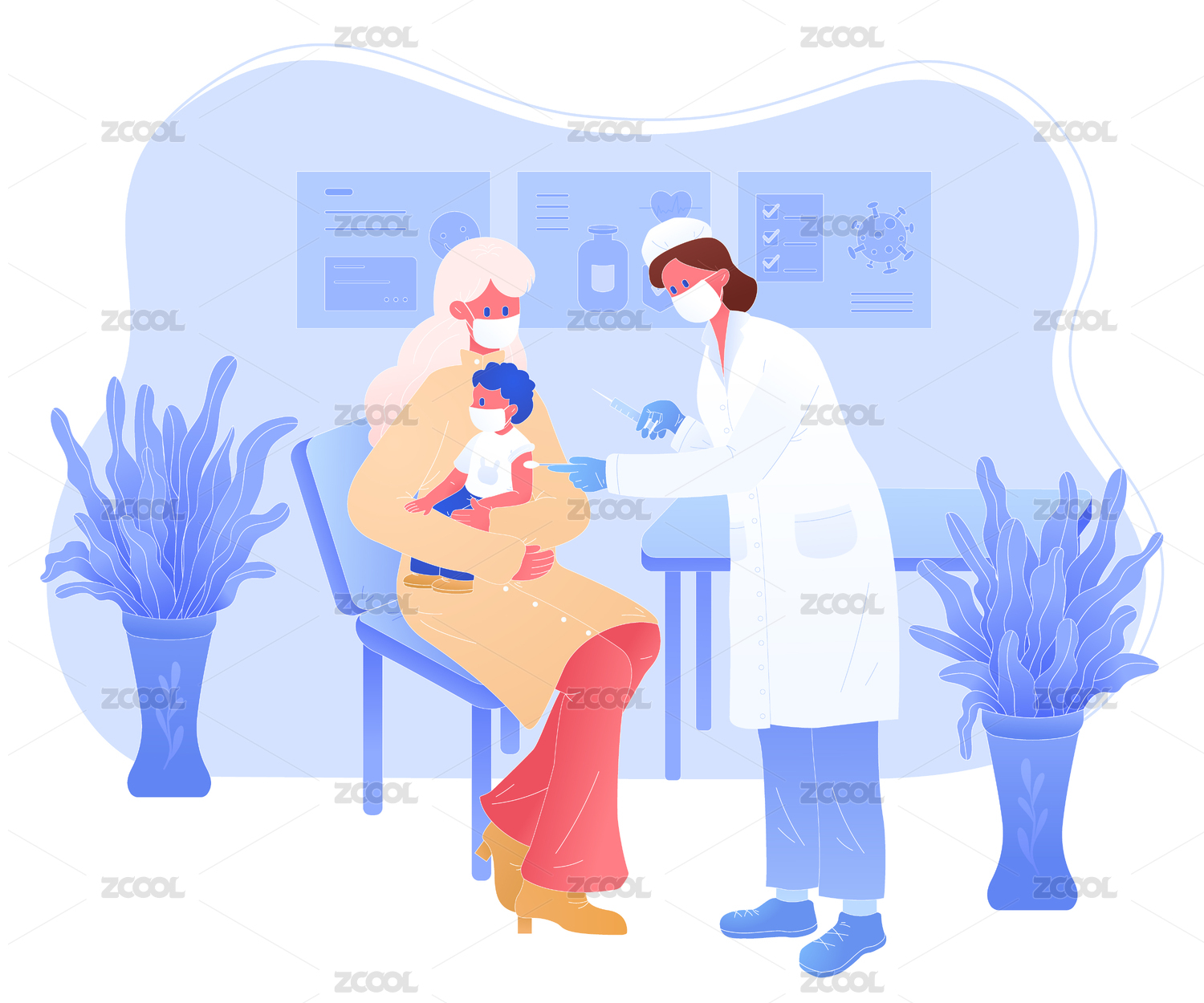 妈妈带孩子去医院看病或打疫苗矢量插画