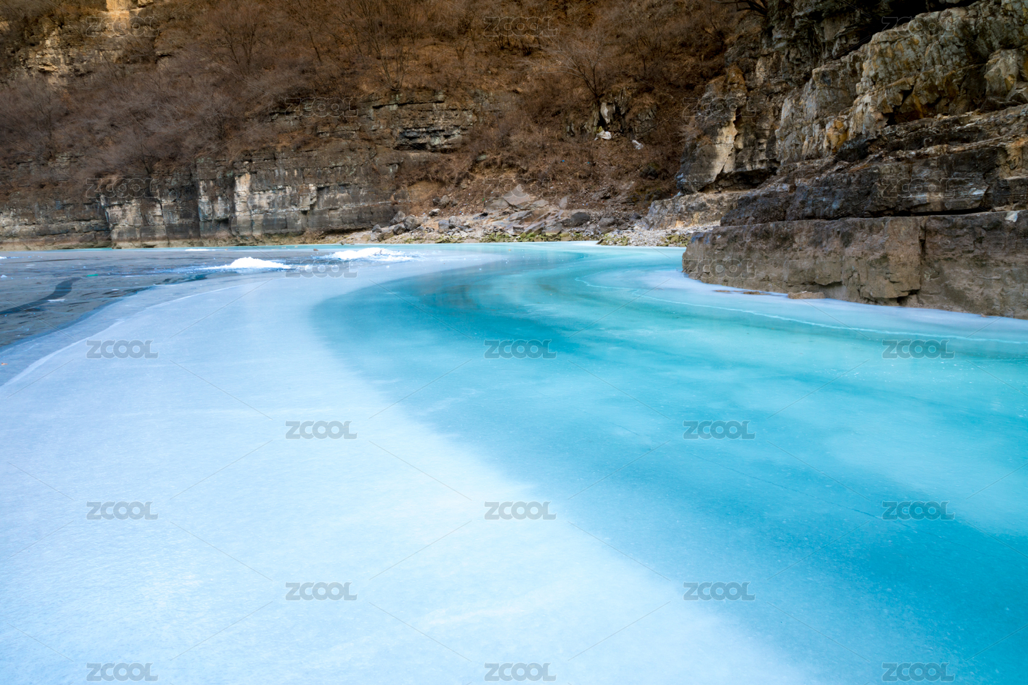 在北京平谷俯拍蓝色的冰冻的河流像地球影像