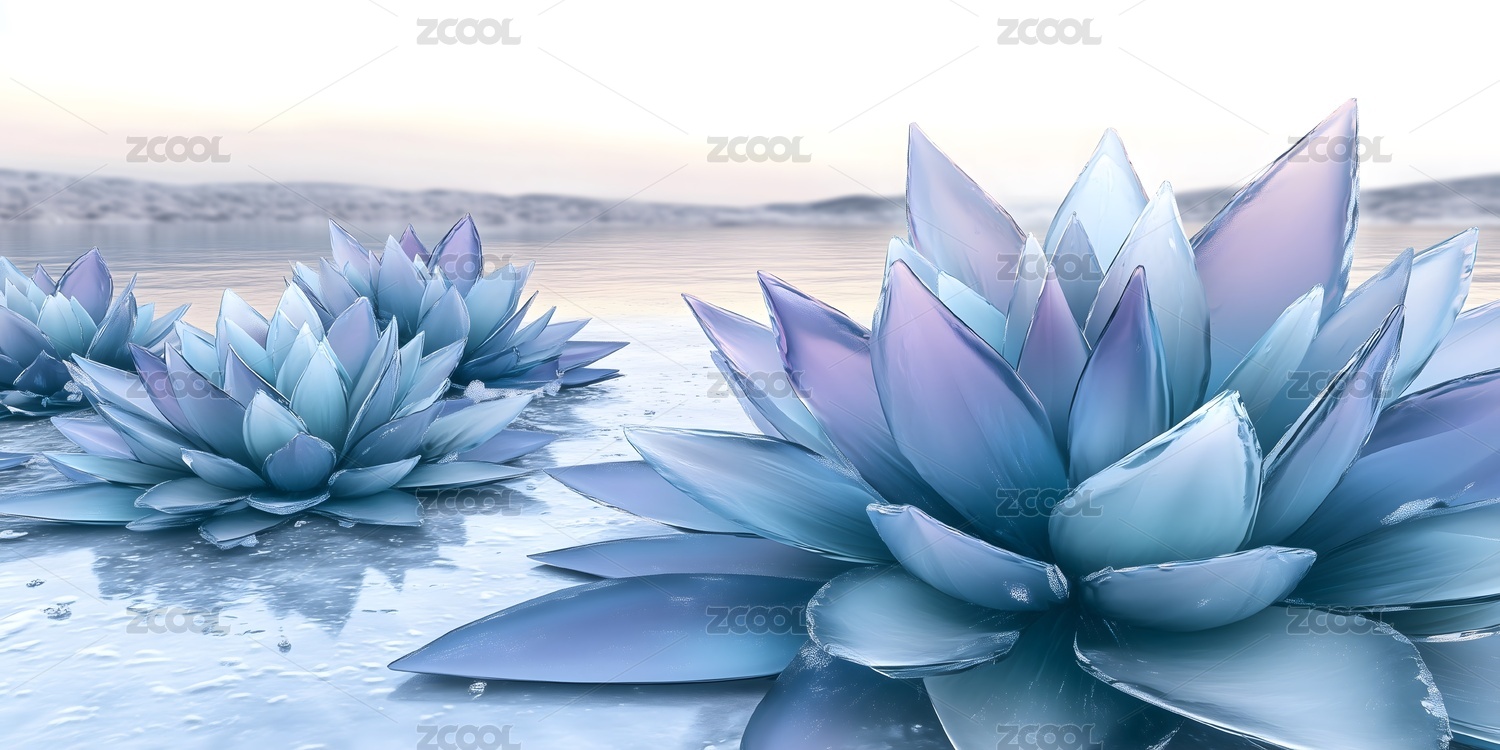 冰蓝色水波桃花波光春天水润手绘插画背景