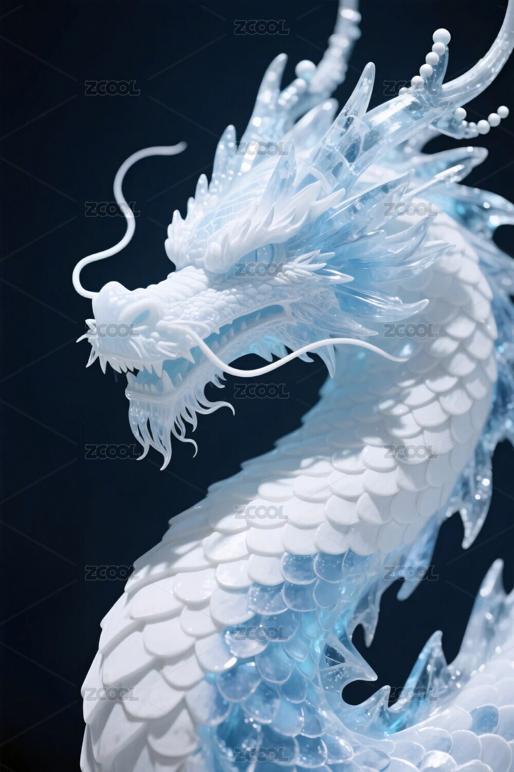 梦幻鹿龙冰蓝色彩的奇幻生物