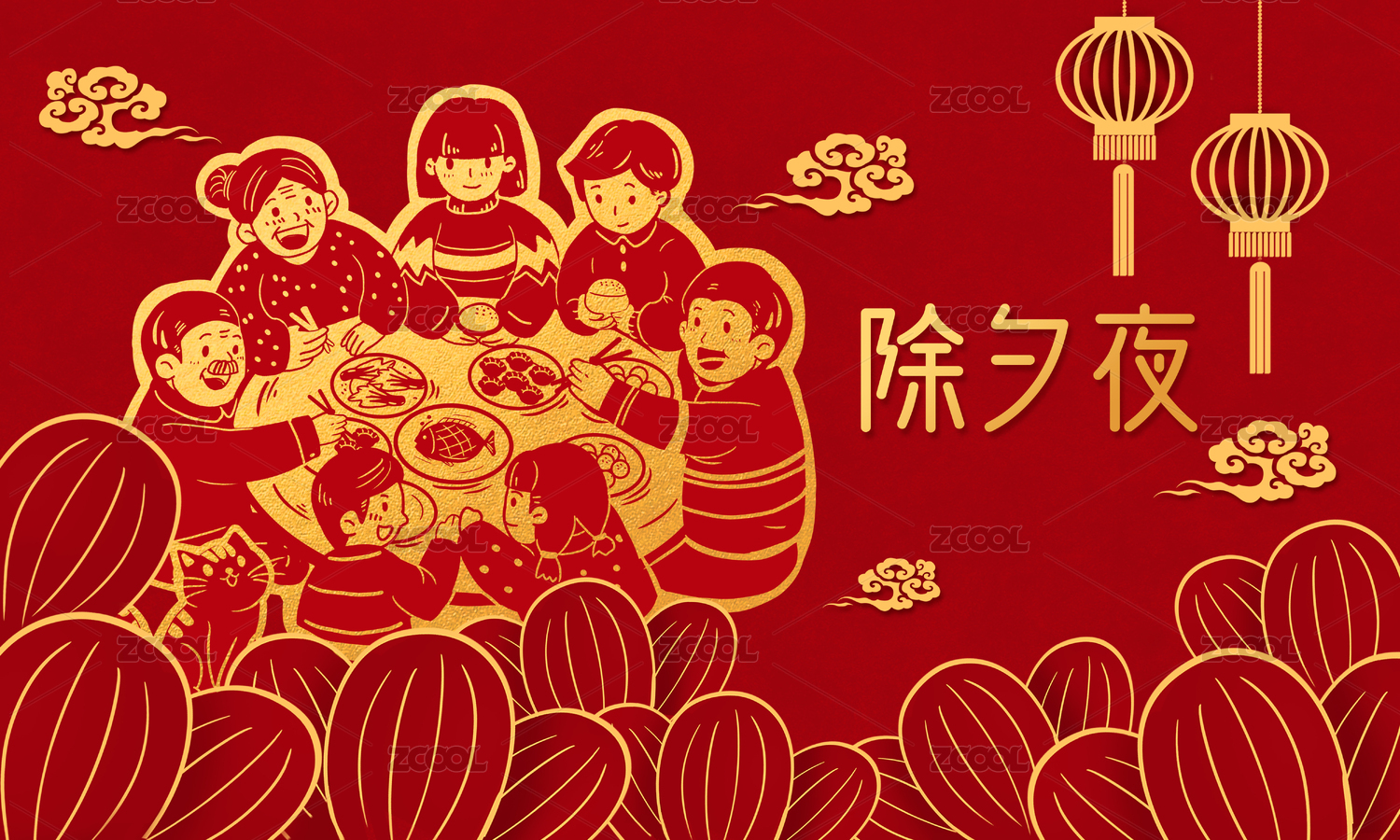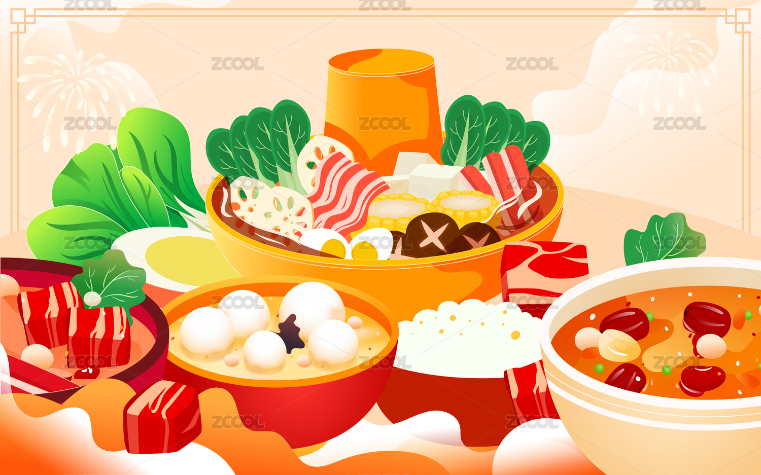 年夜饭插画